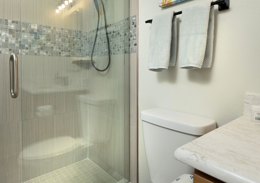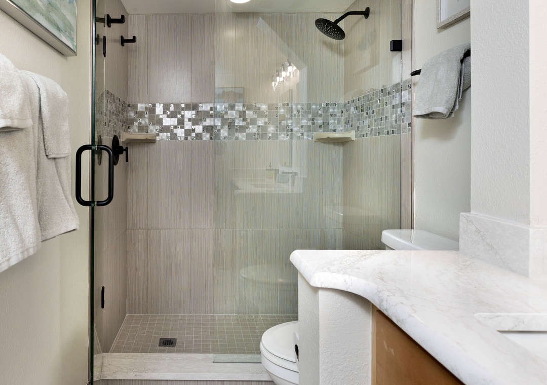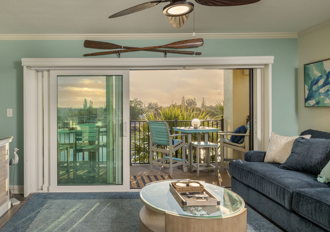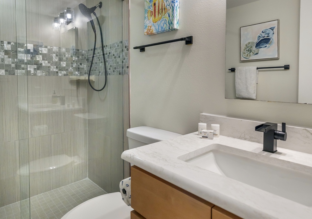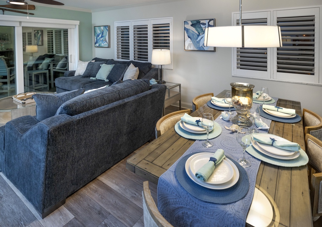 The main bedroom features a comfortable king size bed and a large flat screen television so you can relax after a day at the beach or pool. The attached bathroom has dual sinks and a beautiful custom walk-in shower. The guest bedroom offers two full size Murphy beds, to best utilize the guest bedroom space and the guest bathroom also has a stunning walk-in shower. You will find a Queen size sleeper sofa in the living room area, which allows this bayfront condo to sleep up to 6 people comfortably.