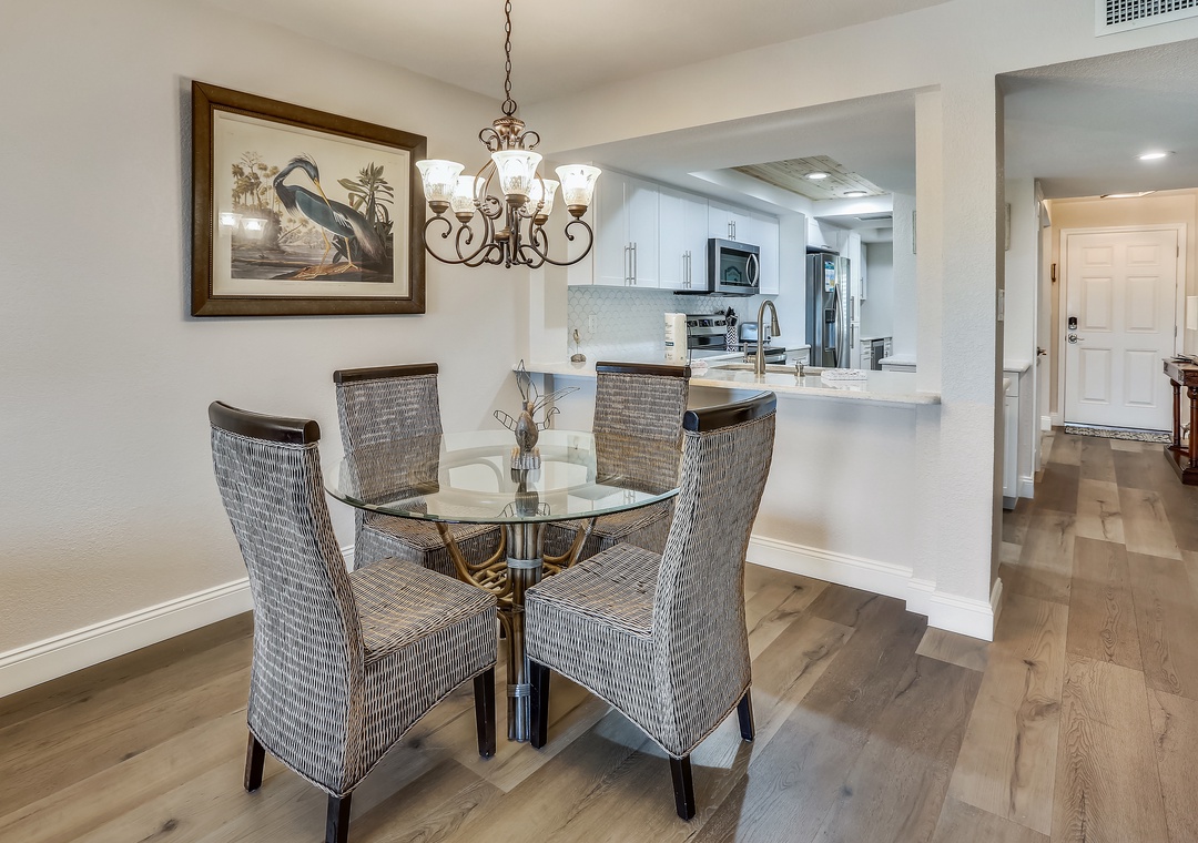 Hi JoAnn, thank you for your review! We're so glad you enjoyed this beautiful property and even got to see the dolphins playing. We appreciate you staying with Resort Rentals and hope to see you again next year!Resort Rentals staff
