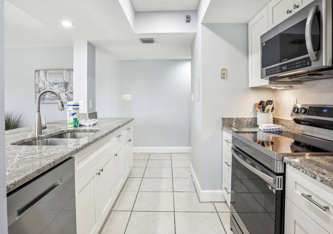 This newly updated 2-bedroom, 2-bathroom condo at Land's End will leave you speechless! You will immediately notice the brightness of this condo as the sunshine pours in from the balcony sliders, leading you out to your private balcony. The views from your balcony are spectacular! The master bedroom has an amazing, new King bed and a private bathroom attached. The 2nd bedroom is the perfect place for the kiddos or guest, having a trundle bed option for extra sleeping! Both bedrooms have a TV for each to enjoy. Add in the convenience of the fully stocked and updated kitchen, washer/dryer in your unit and free wifi, this condo will truly provide you with the perfect combination of style and functionality needed for a seamless living experience during your beach vacation!