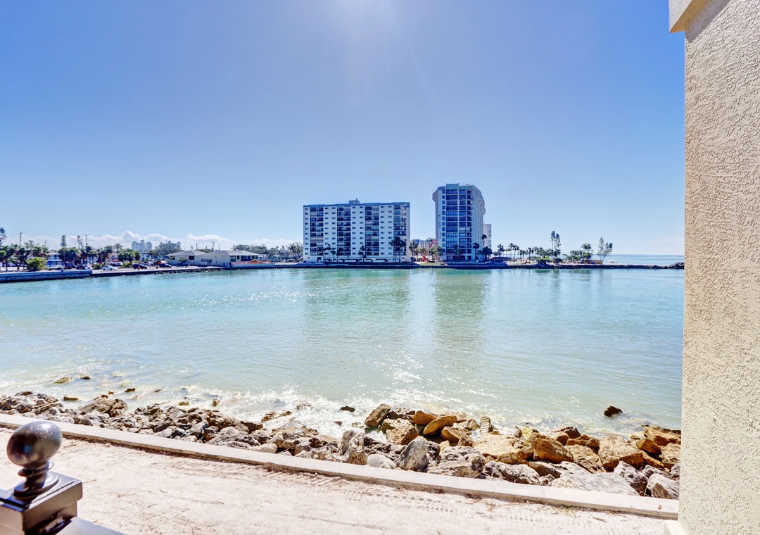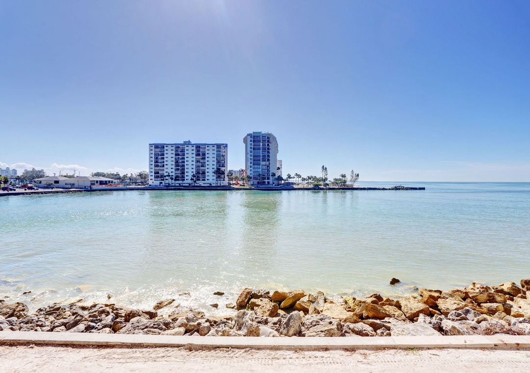 Land's End is a gated waterfront community in Treasure Island, nestled at the end of a peninsula and surrounded by water on three sides. To the east, it borders a channel of the Intracoastal Waterway, while the Gulf of Mexico lies to the west, and Blind Pass to the south. Residents can enjoy stunning views of boats passing through the channel, with dolphins and manatees often spotted nearby. The community features 10 buildings and a range of amenities, including a large, heated pool, hot tub, tennis and pickleball courts, sand volleyball, shuffleboard, gazebos, and a BBQ grilling area. Direct beach access onsite for all offers a perfect blend of relaxation and recreation for anyone.