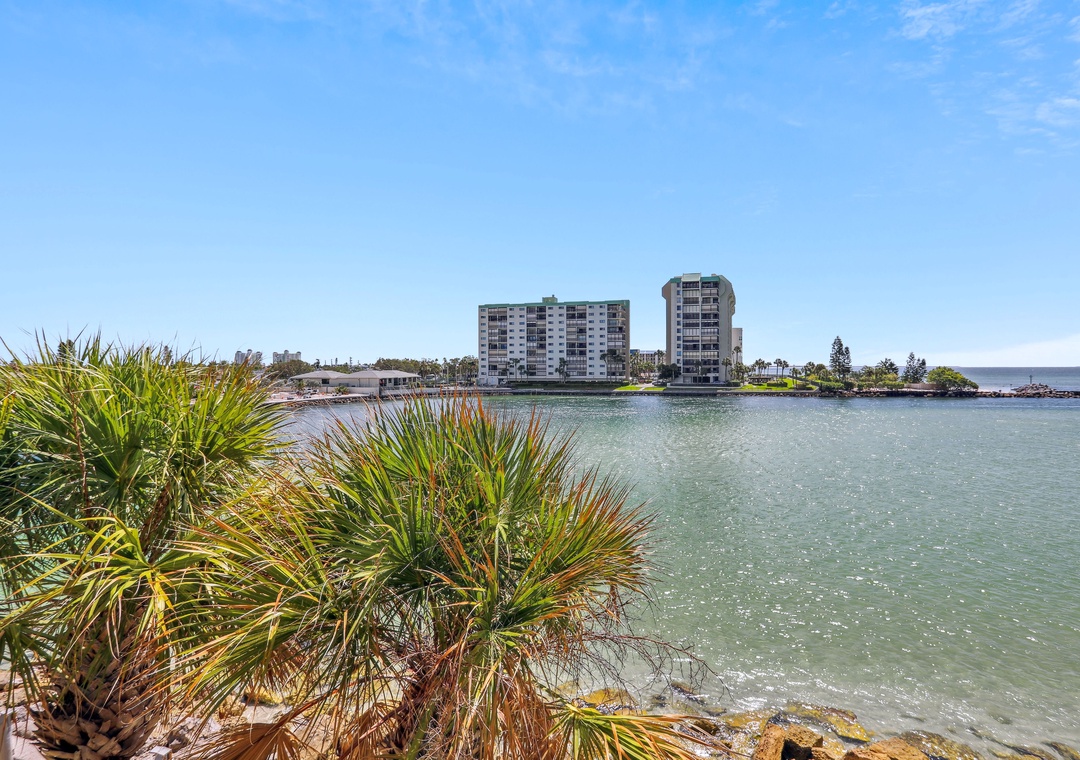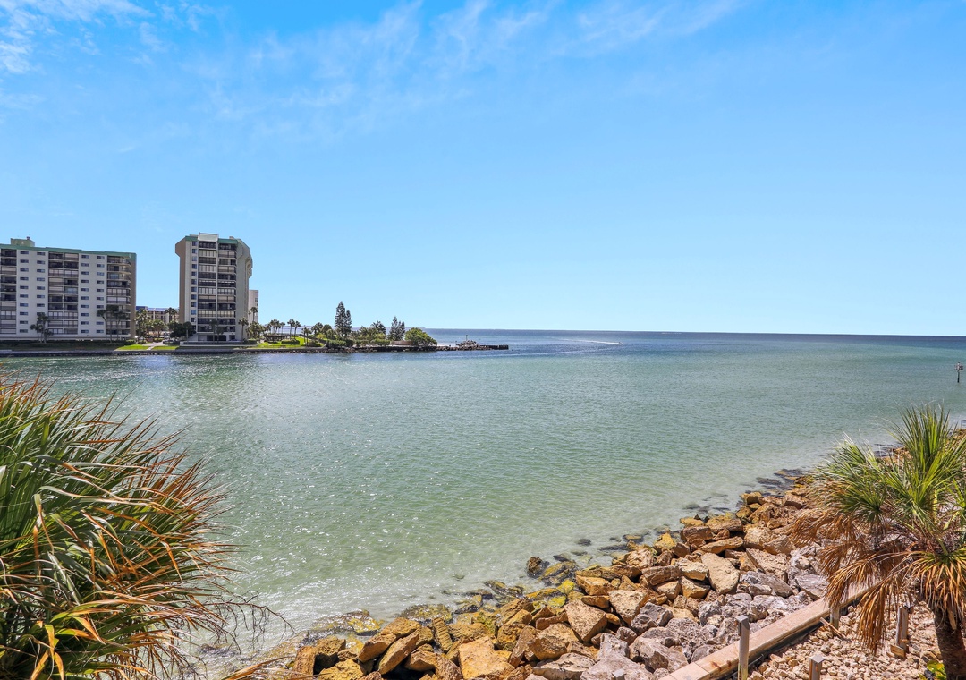 Land's End is a gated waterfront community in Treasure Island, nestled at the end of a peninsula and surrounded by water on three sides. To the east, it borders a channel of the Intracoastal Waterway, while the Gulf of Mexico lies to the west, and Blind Pass to the south. Residents can enjoy stunning views of boats passing through the channel, with dolphins and manatees often spotted nearby. The community features 10 buildings and a range of amenities, including a large, heated pool, hot tub, tennis and pickleball courts, sand volleyball, shuffleboard, gazebos, and a BBQ grilling area. Direct beach access onsite for all offers a perfect blend of relaxation and recreation for anyone.