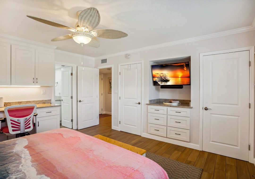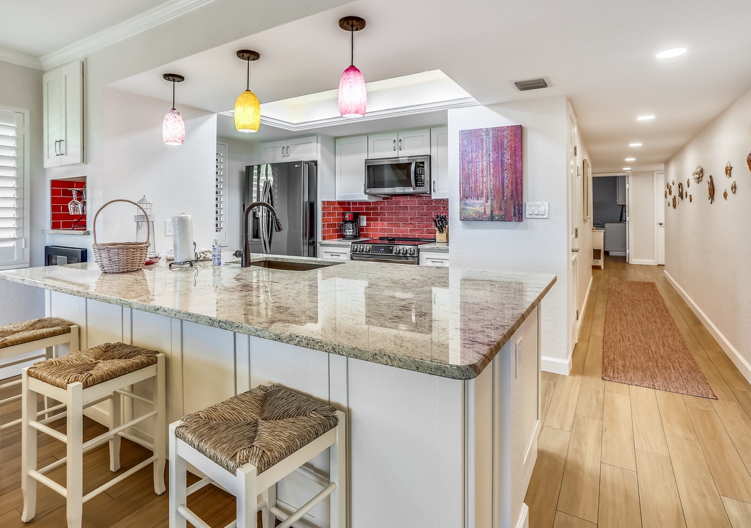 Perfect location by the beach. Watching the sunrise and sunsets over the water directly from the kitchen counter is priceless. The room itself is very specious. Having multiple tv’s helped with the family wanting to watch their own things. The remodeling/upgrades in this condo made the stay feel very much more upscale and comfortable. We had issues with the a/c on the first day, but once we called the manager, they had someone come in and fix it asap. We appreciated their customer service. Some suggestions to the owners/managers that weren’t in our way from a good vacation but could have been a little better: 1.) the blender is old and sticky (it works well) but it is so old that you can’t wash it off anymore 2.) our family needed a larger cutting board for cooking 3.) the sheets in the smaller bedroom need an upgrade, you can tell they were clean but they were worn out and old as well. Other than that, we had a blast. We are looking forward to coming back again. Thank you for everything.- Reviewed On: 7/5/2023