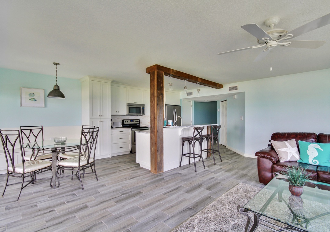 We are so glad you enjoy your time in this lovely beachfront condo at Land's End and enjoyed some new updates! Thank you for being a repeat guest with us, we truly appreciate that and look forward to seeing you back again next season.Resort Rentals staff