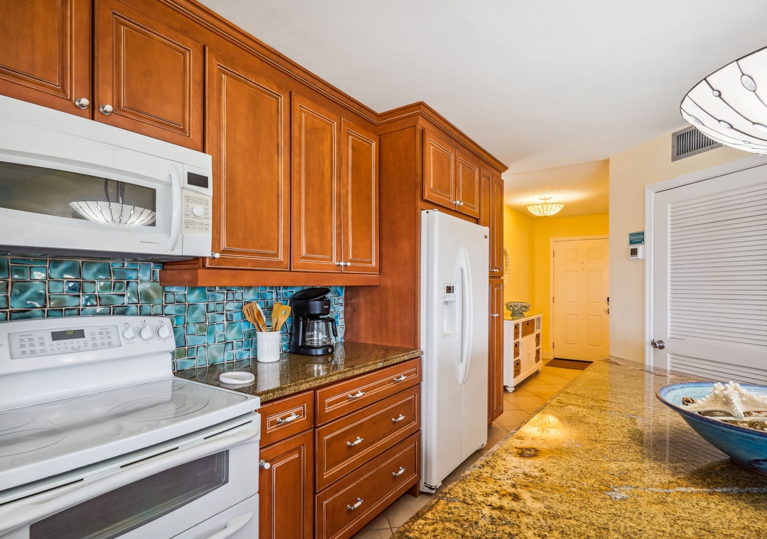 Unit 8-201 is much bigger than pictured and the kitchen is incredibly well stocked.