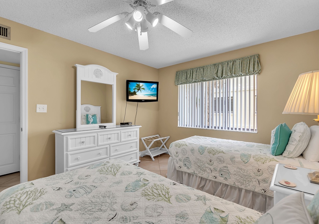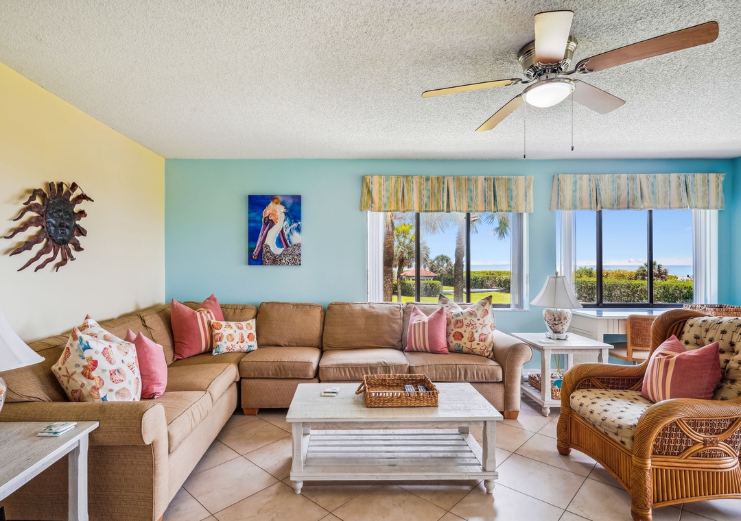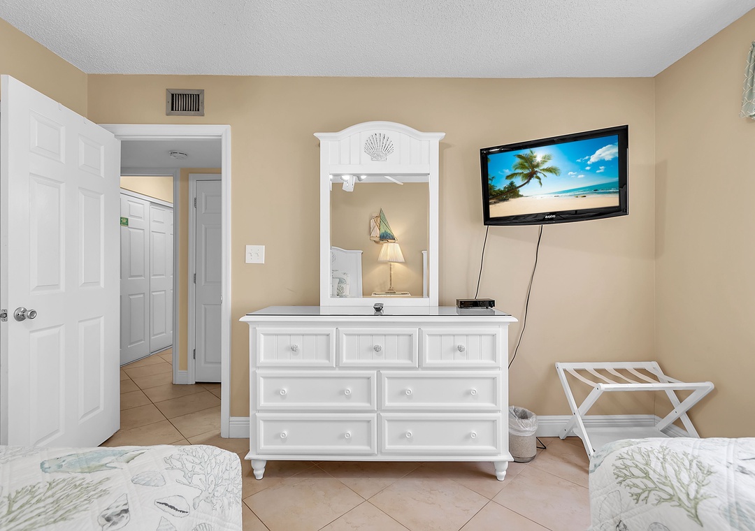This condo was exactly as pictured! The kitchen has plenty of tableware, utensils, plates/bowls, etc. Loved the oceanview and the quick walk to the beach every day. Was never too crowded. Saw dolphins almost everyday and even a manatee! We realized the oven was not working and within 24 hours it was fixed thanks to their prompt and proactive response. The king mattress is definitely on the firmer side and pillows weren't the most comfortable - but that's also a personal preference of ours! Didn't use the twin beds - so can't speak to those. Most restaurants, shopping, and groceries are all within 10-15 minute driving distance. Covered parking was a huge plus! The pool was clean and had plenty of seating. Enjoyed walking the board walk and seeing the dogs at the dog beach! Overall, we really enjoyed our stay here and would definitely recommend it!- Reviewed On: 8/4/2023