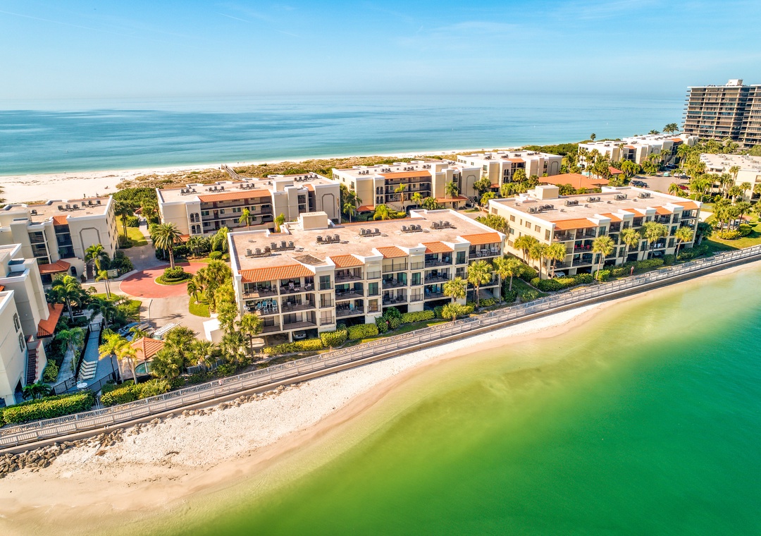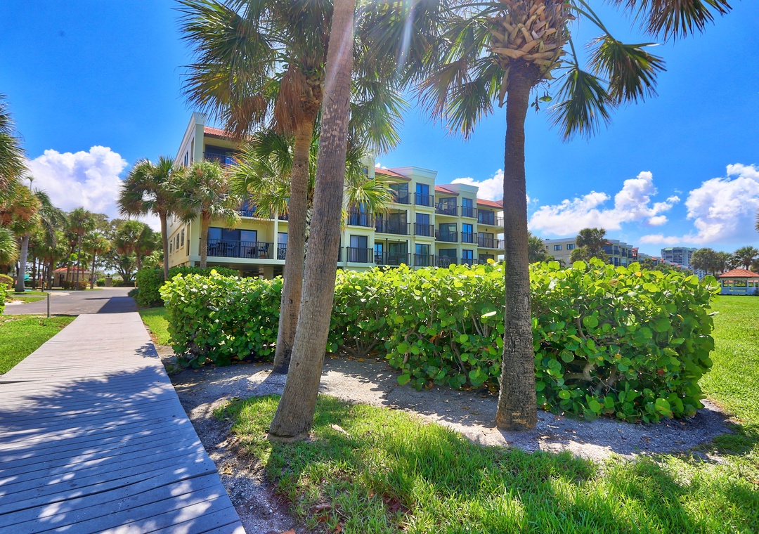 Land's End is a gated waterfront community in Treasure Island, nestled at the end of a peninsula and surrounded by water on three sides. To the east, it borders a channel of the Intracoastal Waterway, while the Gulf of Mexico lies to the west, and Blind Pass to the south. Residents can enjoy stunning views of boats passing through the channel, with dolphins and manatees often spotted nearby. The community features 10 buildings and a range of amenities, including a large, heated pool, hot tub, tennis and pickleball courts, sand volleyball, shuffleboard, gazebos, and a BBQ grilling area. Direct beach access onsite for all offers a perfect blend of relaxation and recreation for anyone.