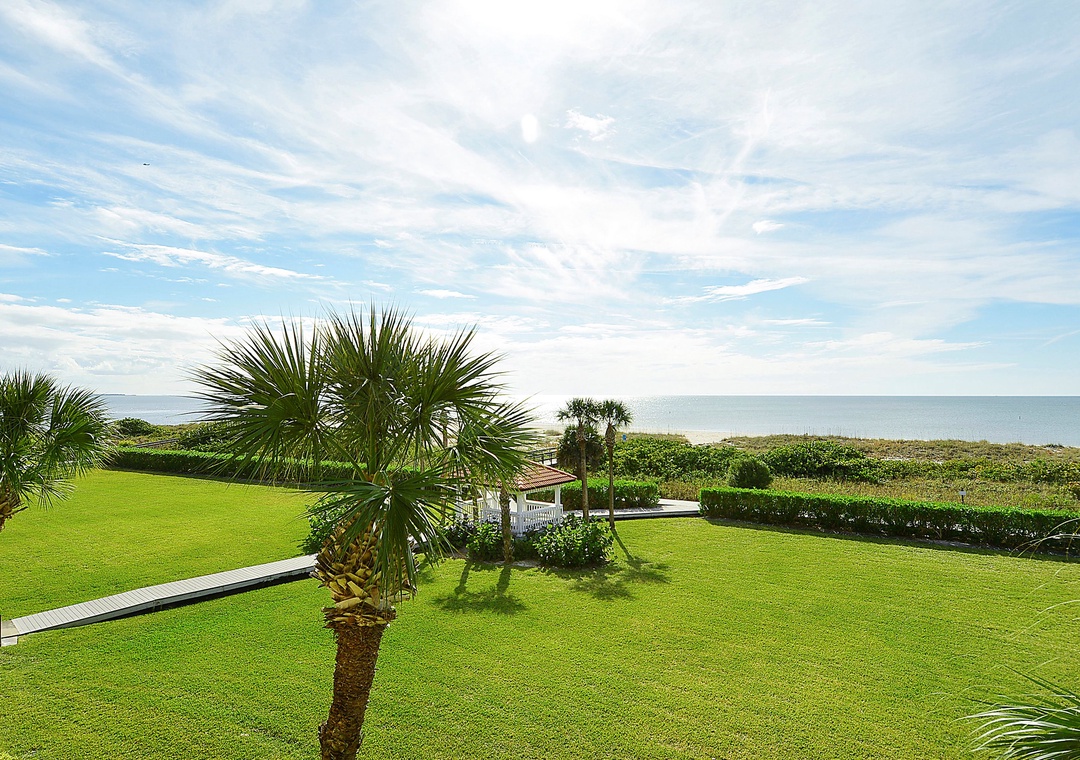 Land's End is a gated waterfront community in Treasure Island, nestled at the end of a peninsula and surrounded by water on three sides. To the east, it borders a channel of the Intracoastal Waterway, while the Gulf of Mexico lies to the west, and Blind Pass to the south. Residents can enjoy stunning views of boats passing through the channel, with dolphins and manatees often spotted nearby. The community features 10 buildings and a range of amenities, including a large, heated pool, hot tub, tennis and pickleball courts, sand volleyball, shuffleboard, gazebos, and a BBQ grilling area. Direct beach access onsite for all offers a perfect blend of relaxation and recreation for anyone.