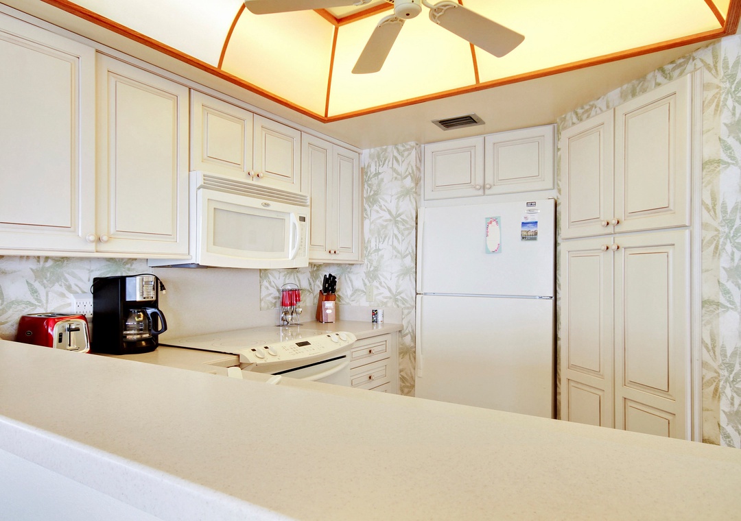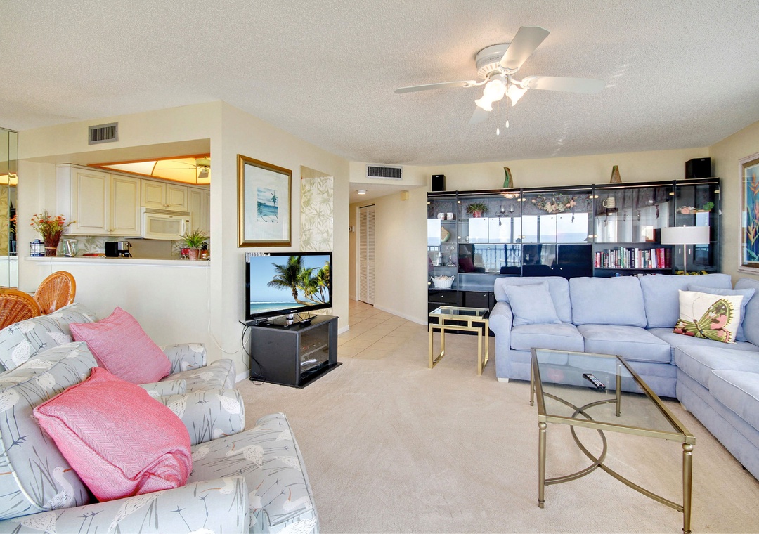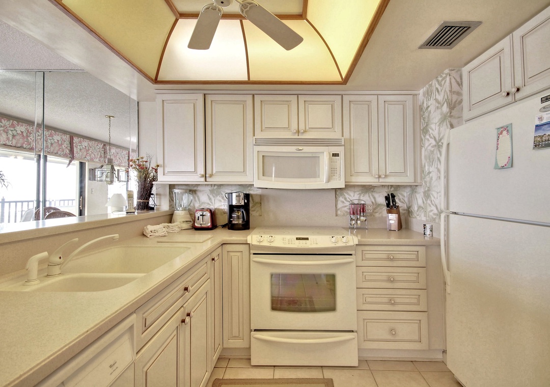 This condo is special! A decorator’s touch is evident in the comfortable, tropical décor. Located on the top floor, south corner you have a sweeping view of the beach and the Gulf of Mexico from your double size balcony. Rows of windows open the space to an expansive view of beach from the living room, dining area and the kitchen. Located in the popular Sunset Beach neighborhood, this lovely condo has a fully equipped kitchen and free wireless internet service.