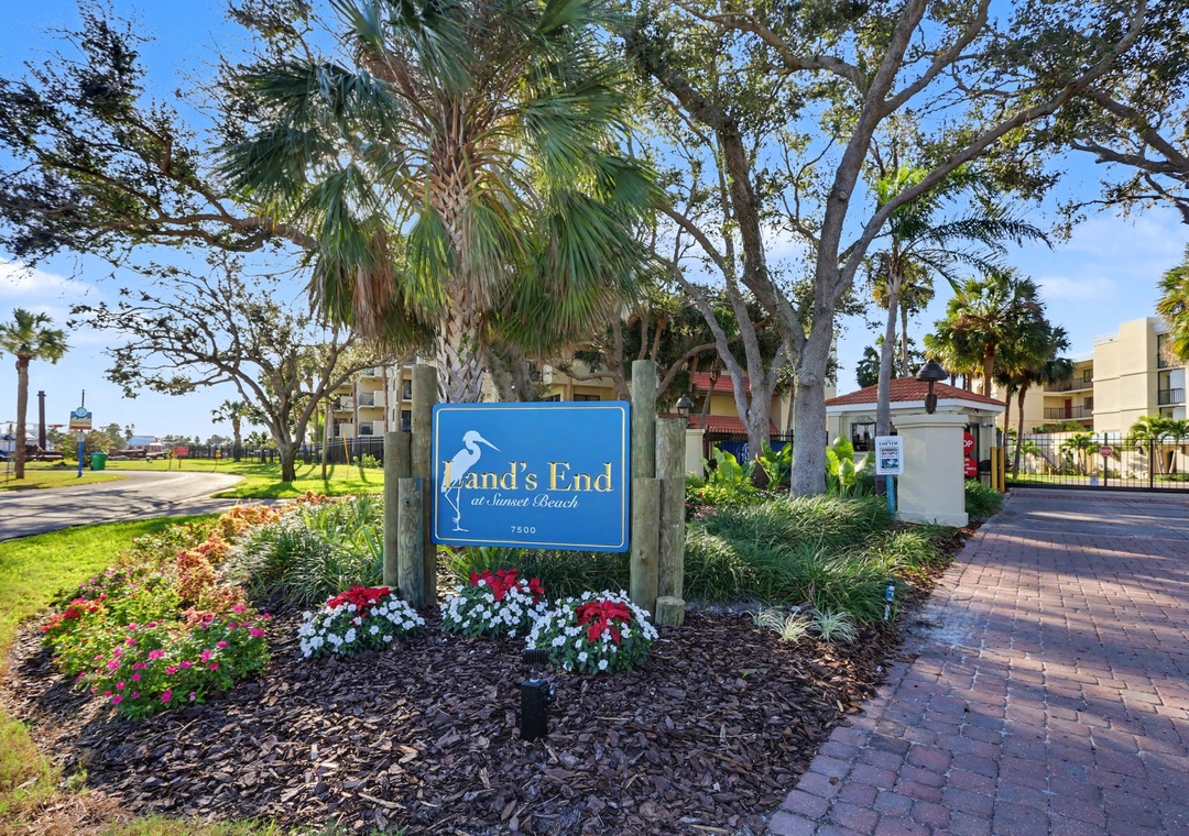 Land's End is a gated waterfront community in Treasure Island, nestled at the end of a peninsula and surrounded by water on three sides. To the east, it borders a channel of the Intracoastal Waterway, while the Gulf of Mexico lies to the west, and Blind Pass to the south. Residents can enjoy stunning views of boats passing through the channel, with dolphins and manatees often spotted nearby. The community features 10 buildings and a range of amenities, including a large, heated pool, hot tub, tennis and pickleball courts, sand volleyball, shuffleboard, gazebos, and a BBQ grilling area. Direct beach access onsite for all offers a perfect blend of relaxation and recreation for anyone.