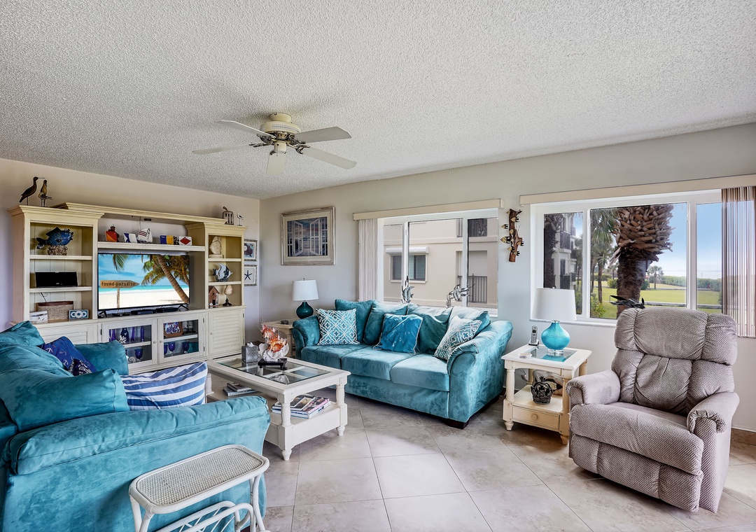 Rating Details: The property manager was very helpful. The vacation rental was spotless. I was very happy with the location. I was more than satisfied with the condition of the vacation rental. Overall, I recommend this vacation rental. Reviewer Comments: Our rental unit was an exceptionally well maintained condo with a beautiful sunlit living and dining area looking onto the lush lawn and ocean. The area is very quiet and less commercialized, although there are two little eateries/bars within walking distance. We were right next door to the pool. The front gate supplied us with shuffleboard and volleyball gear and the condo owners had several beach chairs, umbrellas, paddle ball, and a wheeled cooler for beach use. The master bedroom's bed was ridiculously comfortable, although the 2nd bedroom's twin beds were literally like lying on a concrete slab. Fortunately, the pull our sofa took their place for our adult daughters. Overall, this was an exceptional rental and we enjoyed our time there.- Reviewed On: 8/14/2016