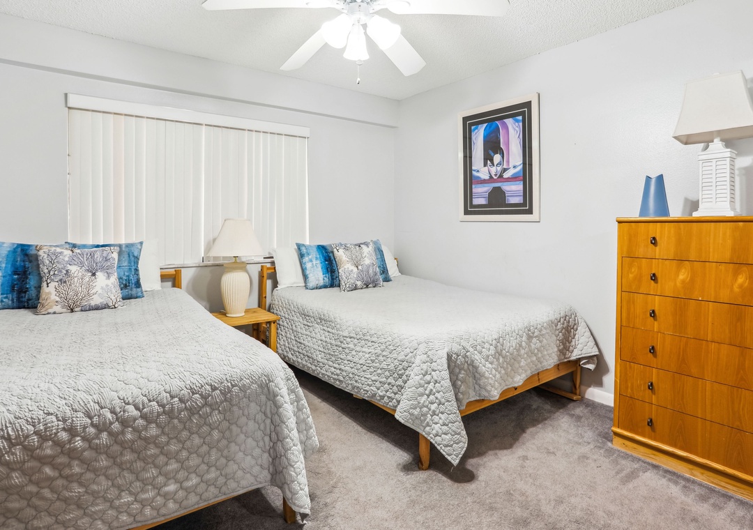 The unit itself is a little “tired” and could use some TLC. Bedrooms are fine with king bed in the master and 2 double beds in second bedroom. Living room furniture is not comfortable and unit needs a paint job.