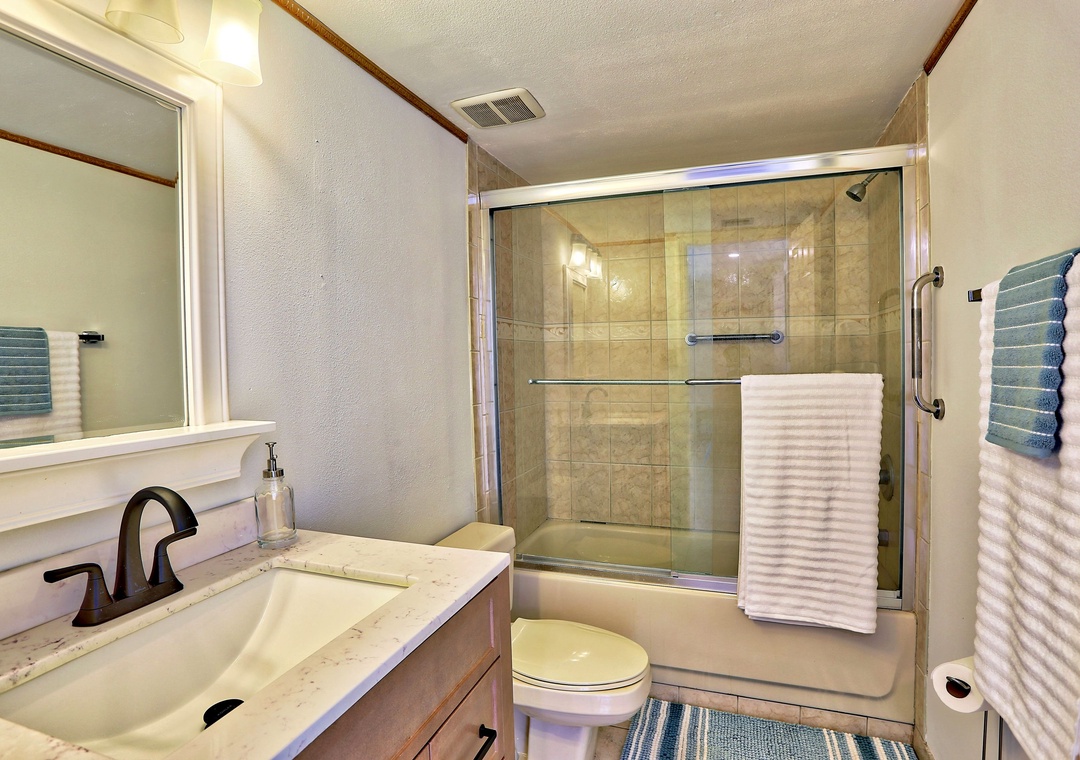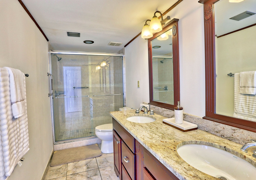 The master bedroom features a king bed, a TV, and an attached bathroom for ultimate comfort. The guest bedroom is furnished with two full-sized beds and TV, perfect for families or groups. For added convenience, the condo also includes an in-unit washer and dryer. Enjoy a relaxing stay with everything you need right at your fingertips!