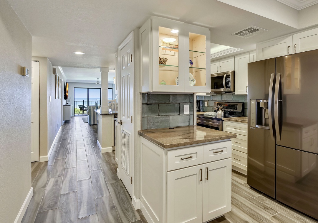 This unit has just had a full renovation from top to bottom and nothing has been missed here!! Beautifully done with all new flooring throughout, brand new furnishings that are extremely comfortable with plenty of seating for all, both bathrooms have brand new showers and vanities in place that are gorgeous, fully renovated kitchen that has all new black stainless appliances and is fully stocked and ready for your cooking magic to happen and not to mention stunning Gulf views from your private balcony; it doesn't get any better than this at Land's End!! Building #9 is located right next to the large swimming pool and Jacuzzi tub onsite.