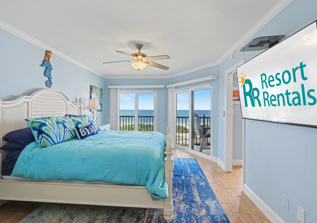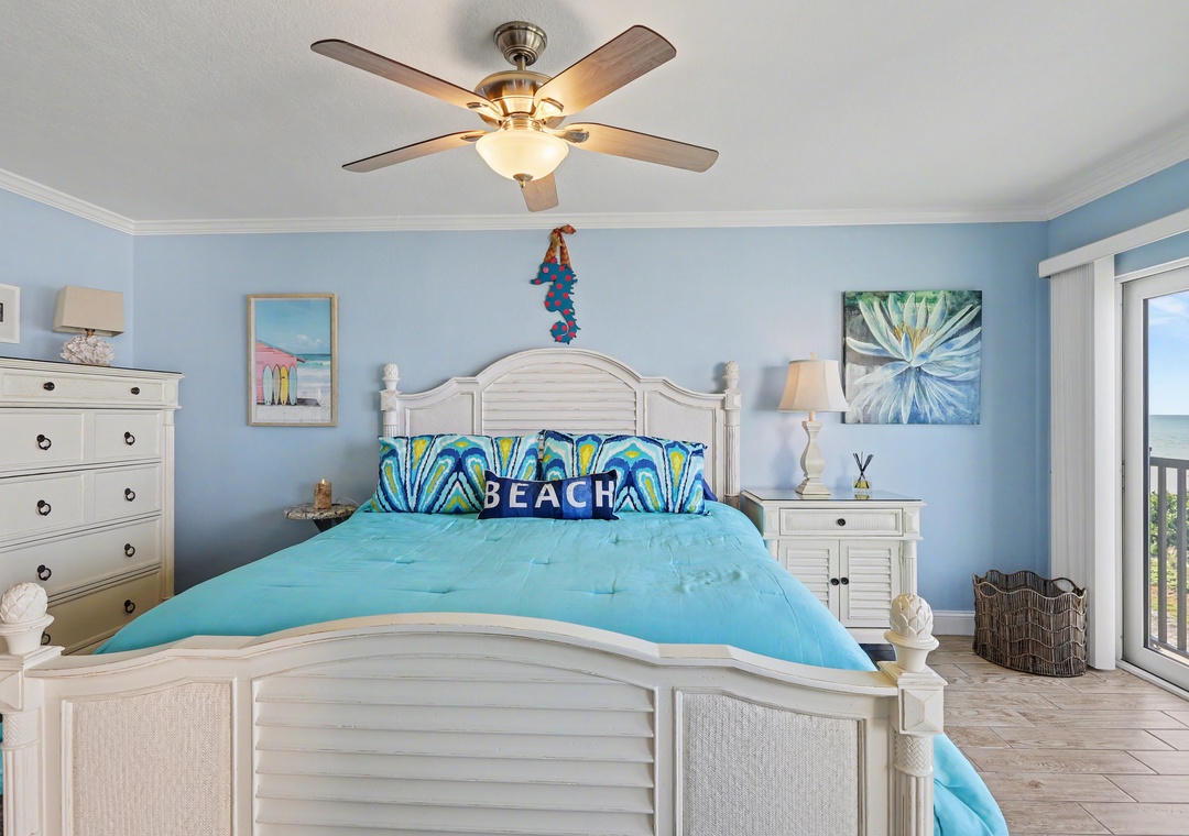 Master Bedroom - King Bed. Attached Bathroom. Balcony Access.