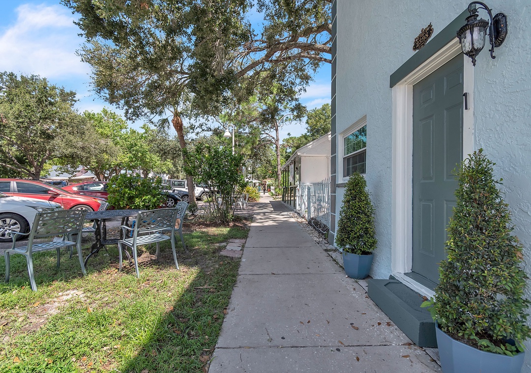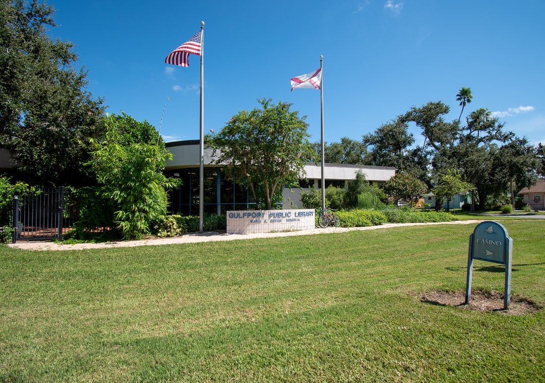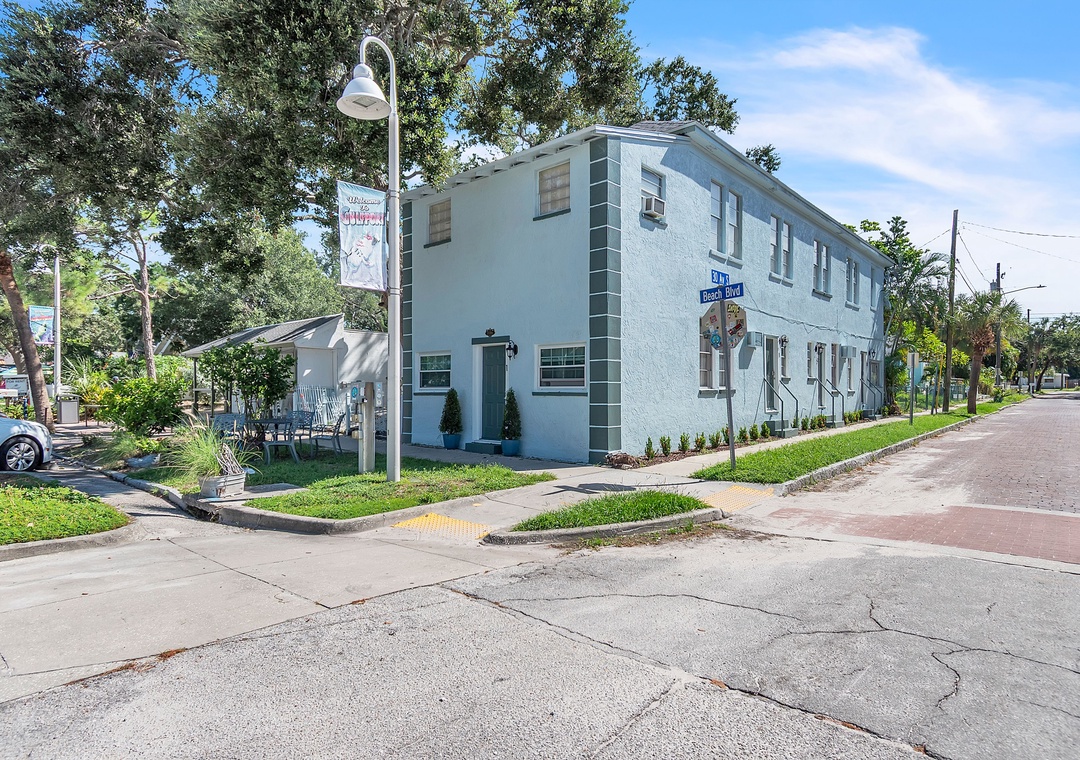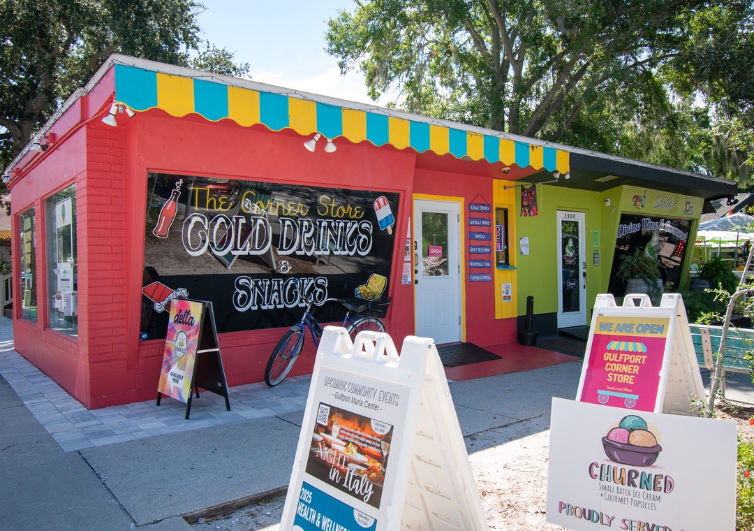 **THE STORY** This historic building has a rich and colorful past that reflects the early development of Gulfport. Originally swampland owned by the state of Florida, the land was purchased in 1912 and soon became home to one of Gulfport’s first commercial buildings—a grocery store with the shop on the lower level and the owners living upstairs. In the 1920s, it transformed into Florida Playthings, Inc., a small factory producing wooden toys and lawn ornaments. By 1938, the building was converted into apartments, marking yet another chapter in its evolution. Behind the main structure sits a small cottage with its own unique story—it once served as Gulfport’s first library, a private effort launched by a wealthy local resident. Originally a streetcar line storage shed, the building was relocated and repurposed as a clubhouse and library, staffed by local girls in the late 1910s and early 1920s.