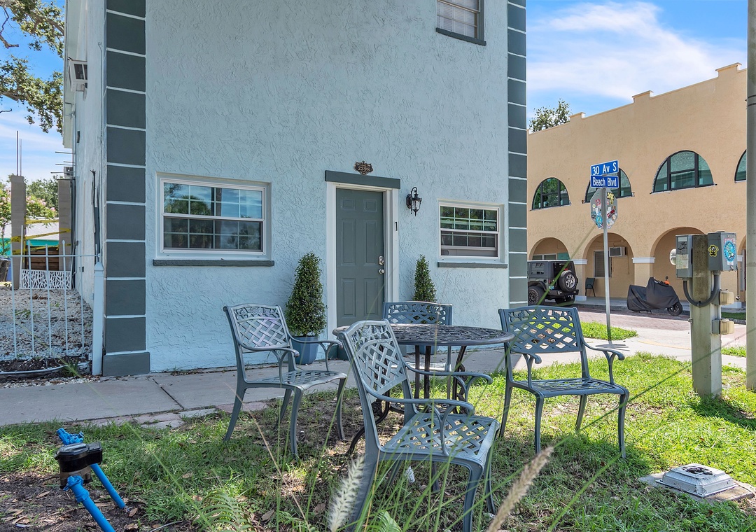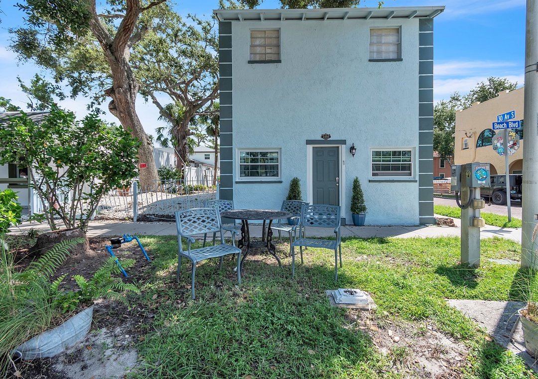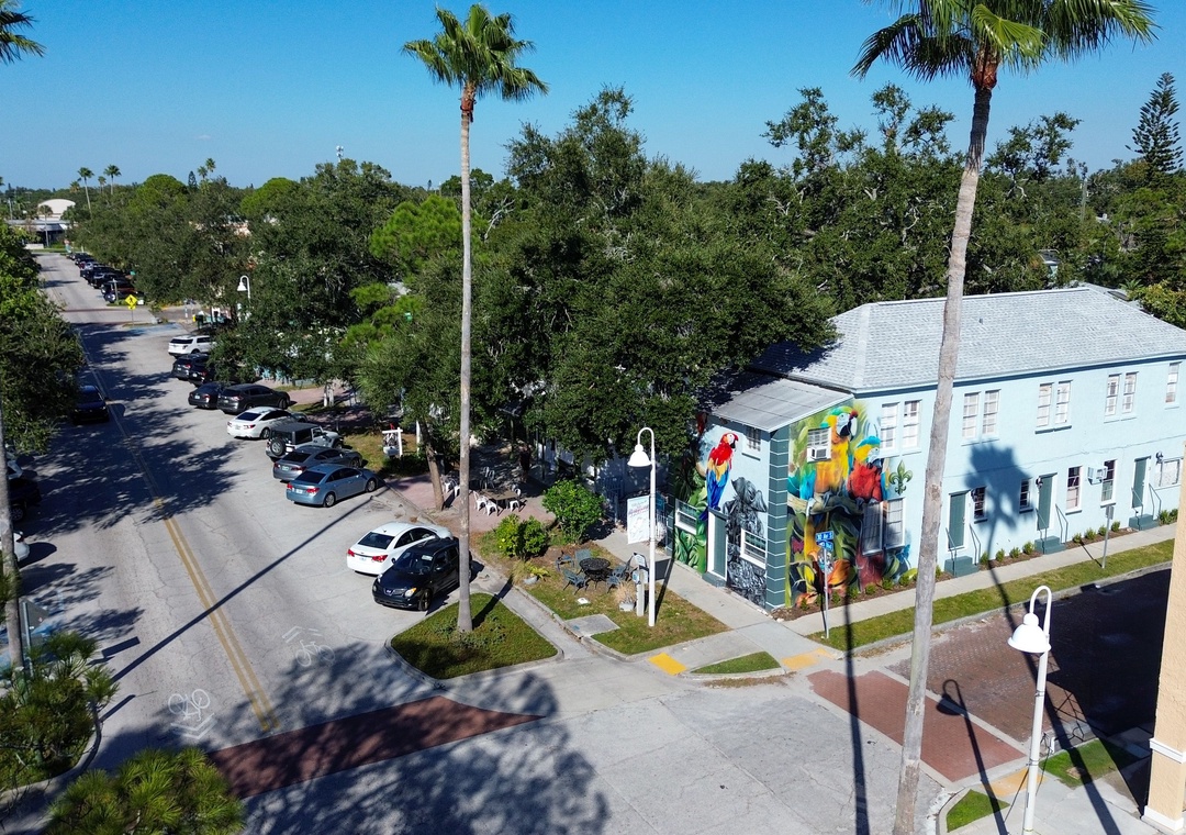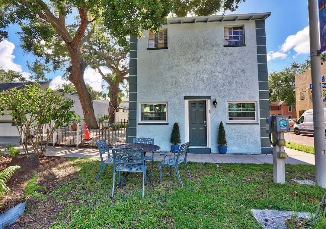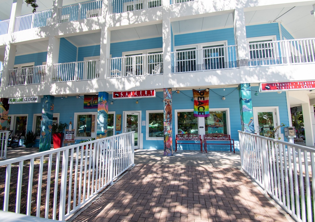 **THE STORY** This historic building has a rich and colorful past that reflects the early development of Gulfport. Originally swampland owned by the state of Florida, the land was purchased in 1912 and soon became home to one of Gulfport’s first commercial buildings—a grocery store with the shop on the lower level and the owners living upstairs. In the 1920s, it transformed into Florida Playthings, Inc., a small factory producing wooden toys and lawn ornaments. By 1938, the building was converted into apartments, marking yet another chapter in its evolution. Behind the main structure sits a small cottage with its own unique story—it once served as Gulfport’s first library, a private effort launched by a wealthy local resident. Originally a streetcar line storage shed, the building was relocated and repurposed as a clubhouse and library, staffed by local girls in the late 1910s and early 1920s.