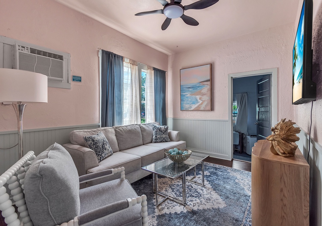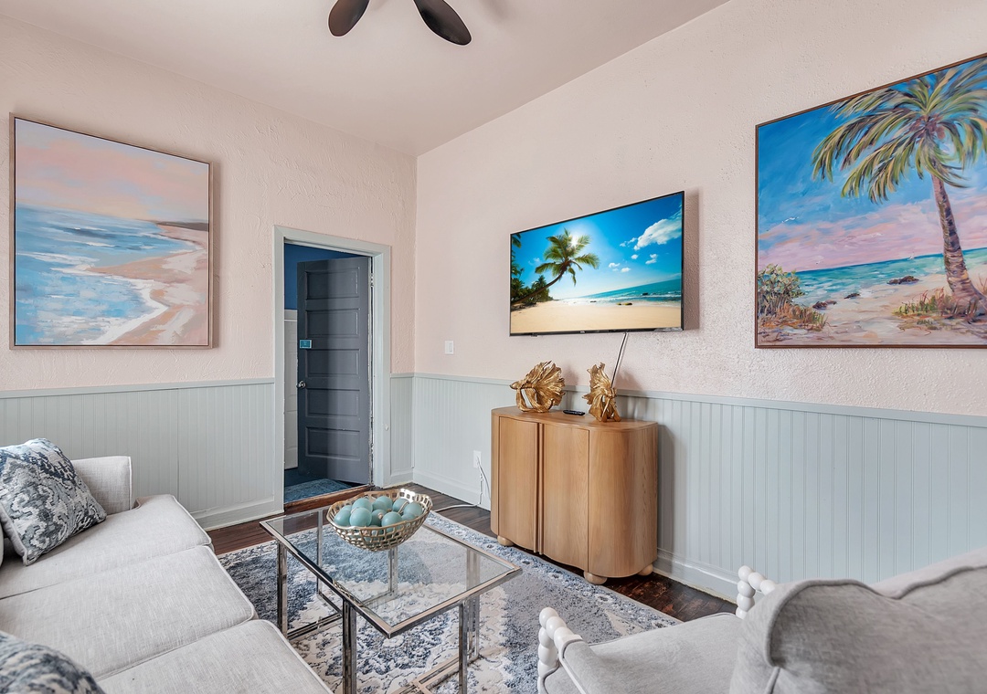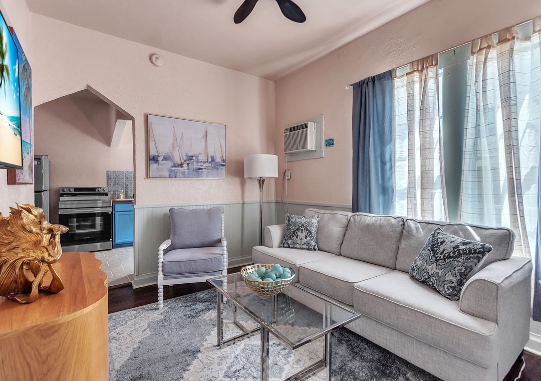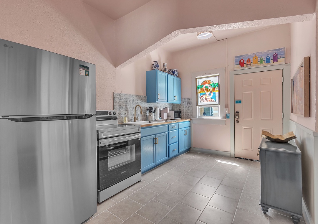 Welcome to Ledoux Carre', your perfect Gulfport getaway! This beautifully updated 2-bedroom, 1-bath condo is located in a charming historic building that has been thoughtfully converted into three private units. Each bedroom in this unit features a cozy queen bed, a TV for relaxing evenings, and one even includes a dedicated desk space for those working while in town. The full kitchen is equipped with stainless steel appliances, cookware, dishes, and utensils—everything you need to enjoy meals at home (please note, there is no dishwasher). Unwind in the comfortable living room with a large-screen TV, or step outside and explore the vibrant neighborhood of Gulfport!
