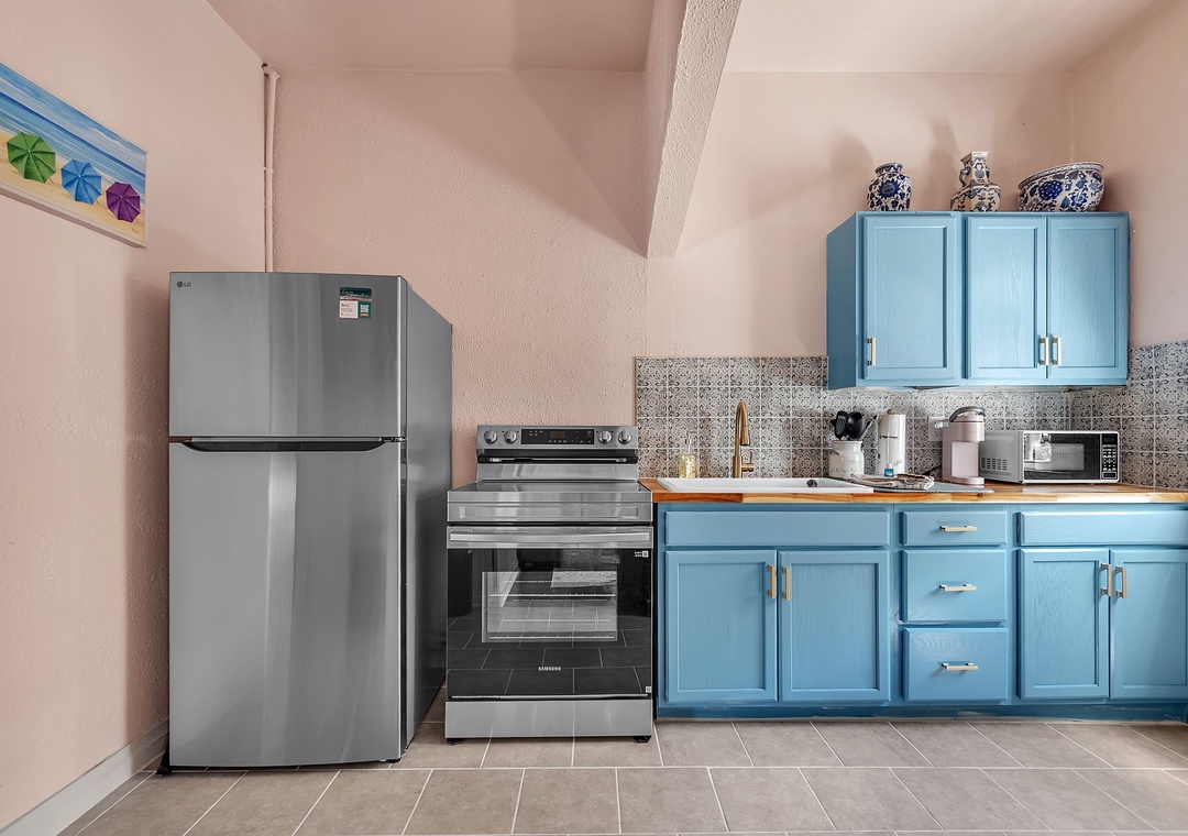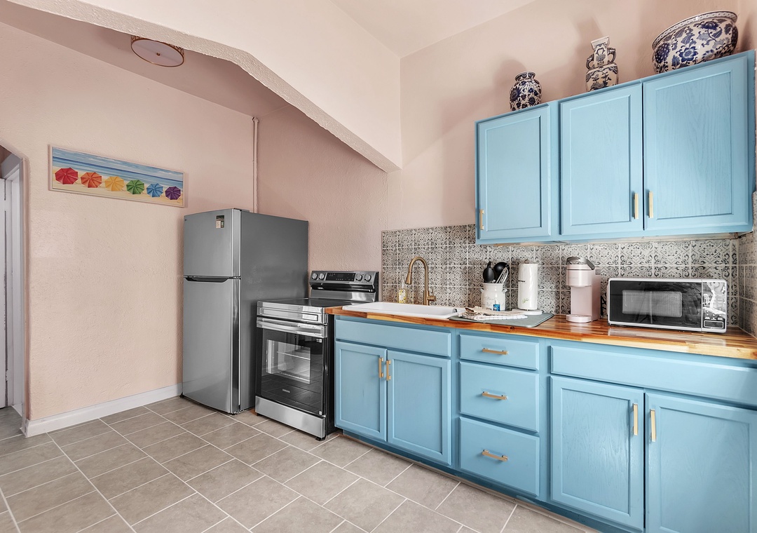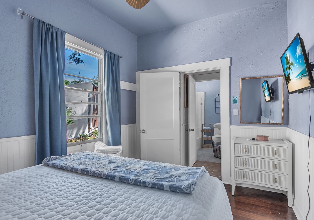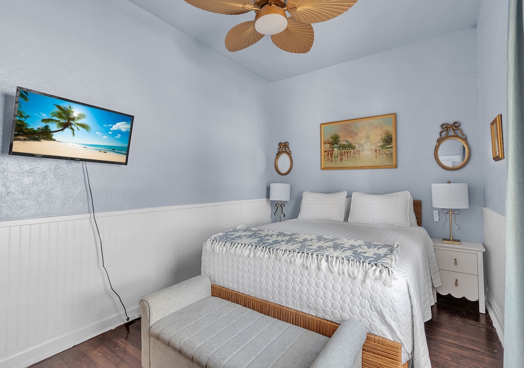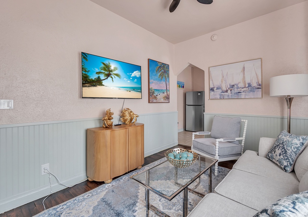 Welcome to Ledoux Carre', your perfect Gulfport getaway! This beautifully updated 2-bedroom, 1-bath condo is located in a charming historic building that has been thoughtfully converted into three private units. Each bedroom in this unit features a cozy queen bed, a TV for relaxing evenings, and one even includes a dedicated desk space for those working while in town. The full kitchen is equipped with stainless steel appliances, cookware, dishes, and utensils—everything you need to enjoy meals at home (please note, there is no dishwasher). Unwind in the comfortable living room with a large-screen TV, or step outside and explore the vibrant neighborhood of Gulfport!