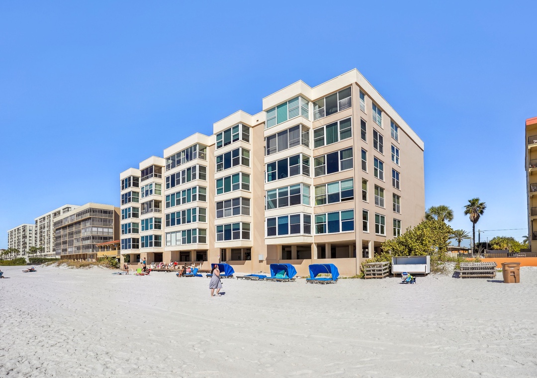 Located directly on the beach in Madeira Beach, FL, this 2 Bedroom, 2 Bathroom condo is equipped to sleep 6 and is perfect for your next beach getaway! The open living area features comfortable furniture, and gorgeous view of the Gulf of Mexico. Located on the 4th floor, this condo offers a full kitchen perfect for cooking a meal with plenty of seating for dining. Look through the expansive windows and enjoy a priceless sunset view.