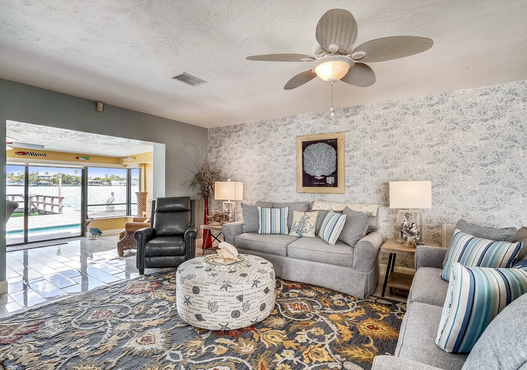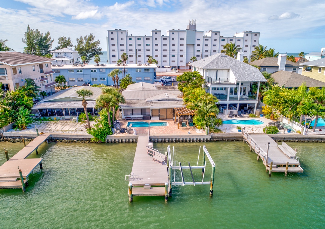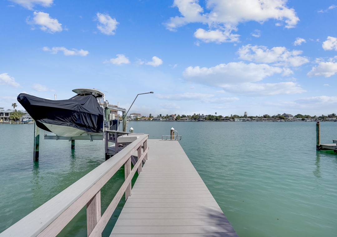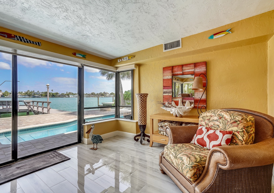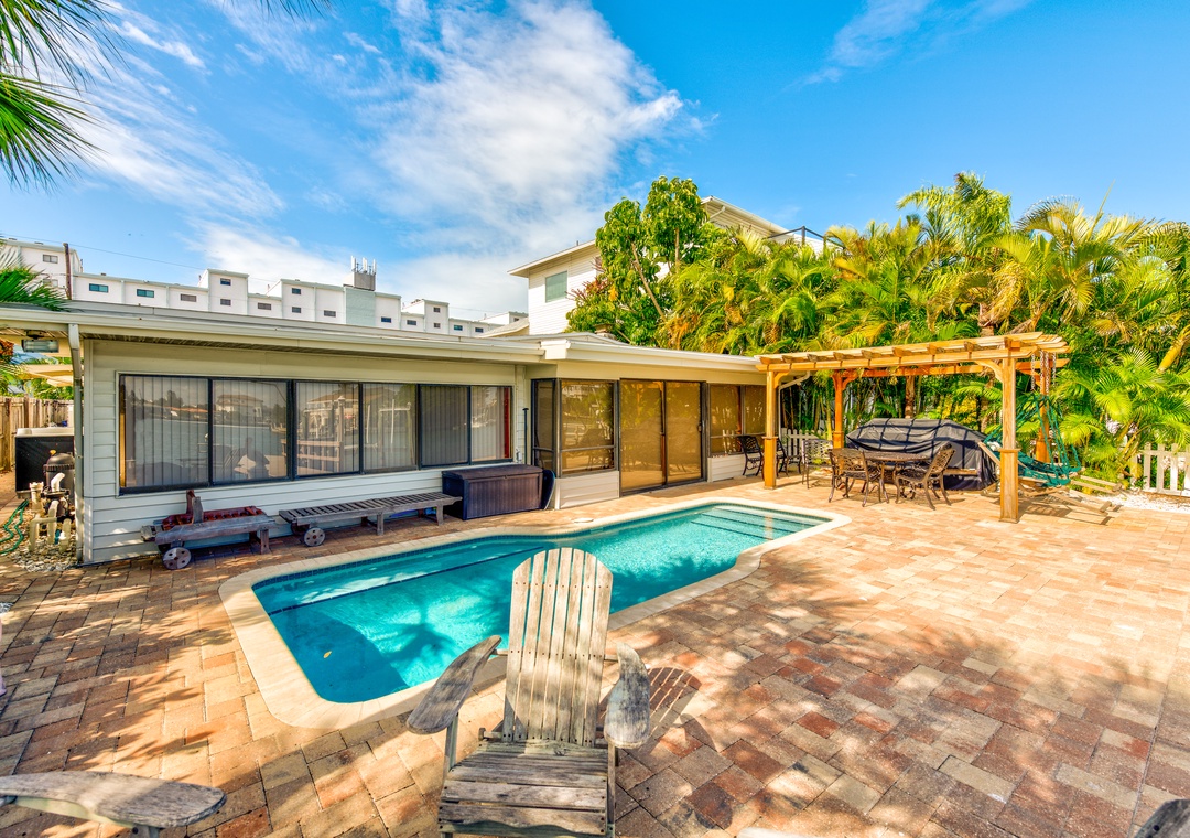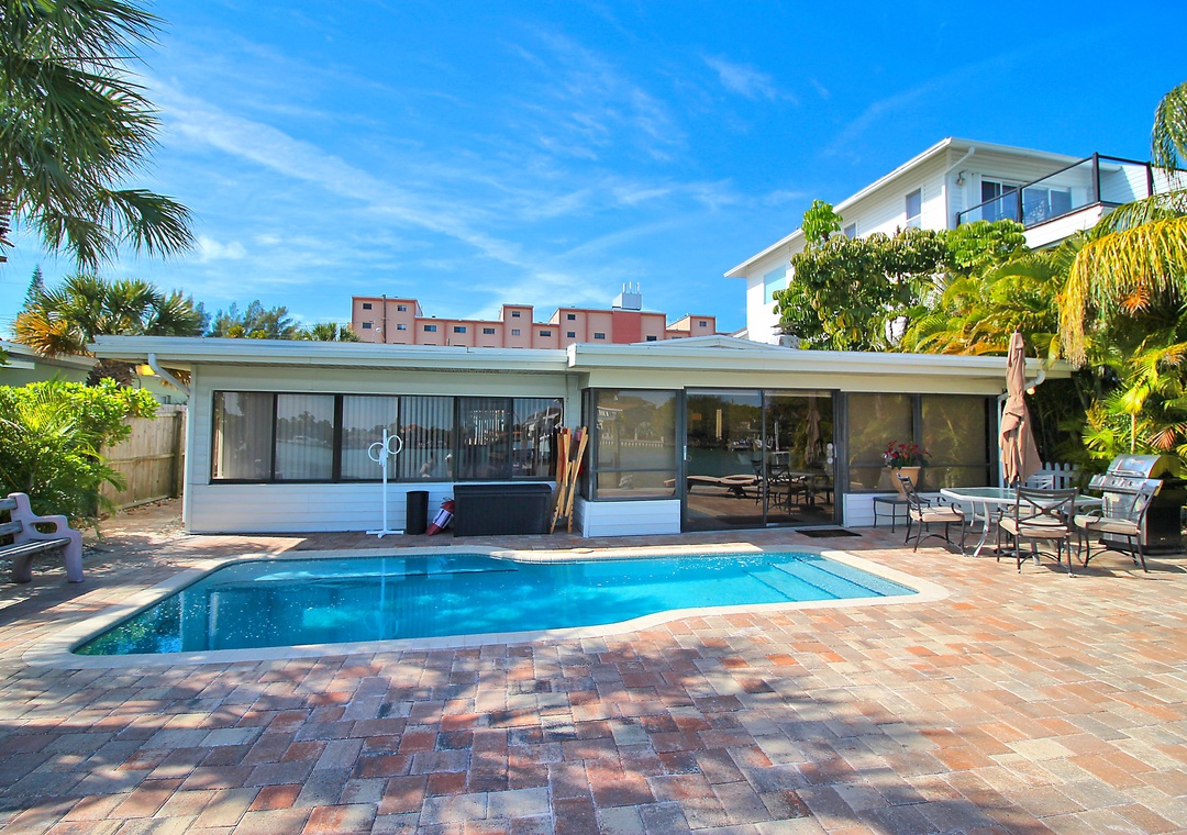 The Manatee Home, recently remodeled, is a spacious waterfront home with a private pool located in the popular Sunset Beach neighborhood of Treasure Island. Your family will fall in love with the recent updates including a fully remodeled kitchen as well as fresh paint, flooring and furnishings throughout the entire home. The pool and patio are located on the bank of the Intracoastal Waterway (Boca Ciega Bay), along with a fishing dock for your use. You have a great view of water activities and wild life as you relax by the pool - heating is optional. Plus, if you want to go to the beach, it is less than 1-block away. This home features an open floor plan. The open kitchen is fully equipped, washer/dryer, 2-car garage, free Internet access and 3 TV's will make your vacation even better. This is a perfect spot for a beach getaway.