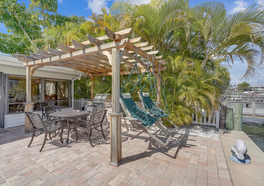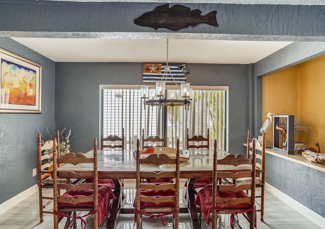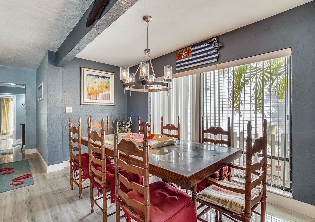 Three spacious bedrooms, beautiful kitchen, large dining table for eating and puzzles, magnificent patio with pool, on the Intercoastal Waterway looking at dolphins and boats and jet skis. Several blue herons annd egrets visited us on our patio every day for hours, then pooped annd left. Out the front and across a small parking lot was The Gulf for swimming, boogie boarding, skim boarding and watching sunsets. As we are getting old, this was our final month long trip to Florida. We had a revolving door of people every week, all women ranging in age from 46 to 78 with one lone 9 year old grandson for a week who loved being surrounded by women. He was spoiled rotten. It was the the most wonderful and amazing end to our 25 years of coming to Florida. We hit all our favorite watering holes and restaurants. The beach walks in the morning and around the neighborhood were exciting just looking at the water and all the various architecture of the houses and spending time at the dog beach. Best Location in the Nation and a beach bar 1/4 mile away serving 3 dollar cheeseburgers all day every day. What could be better than that!- Reviewed On: 5/13/2024