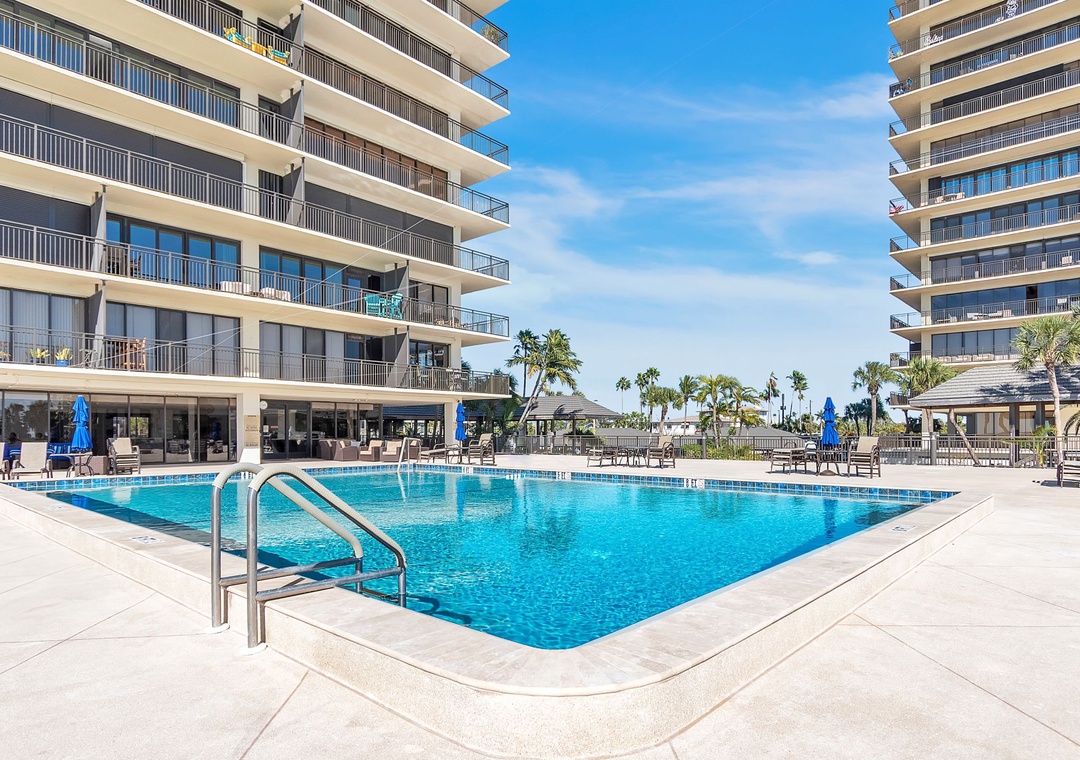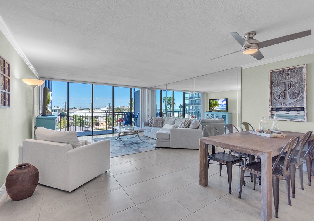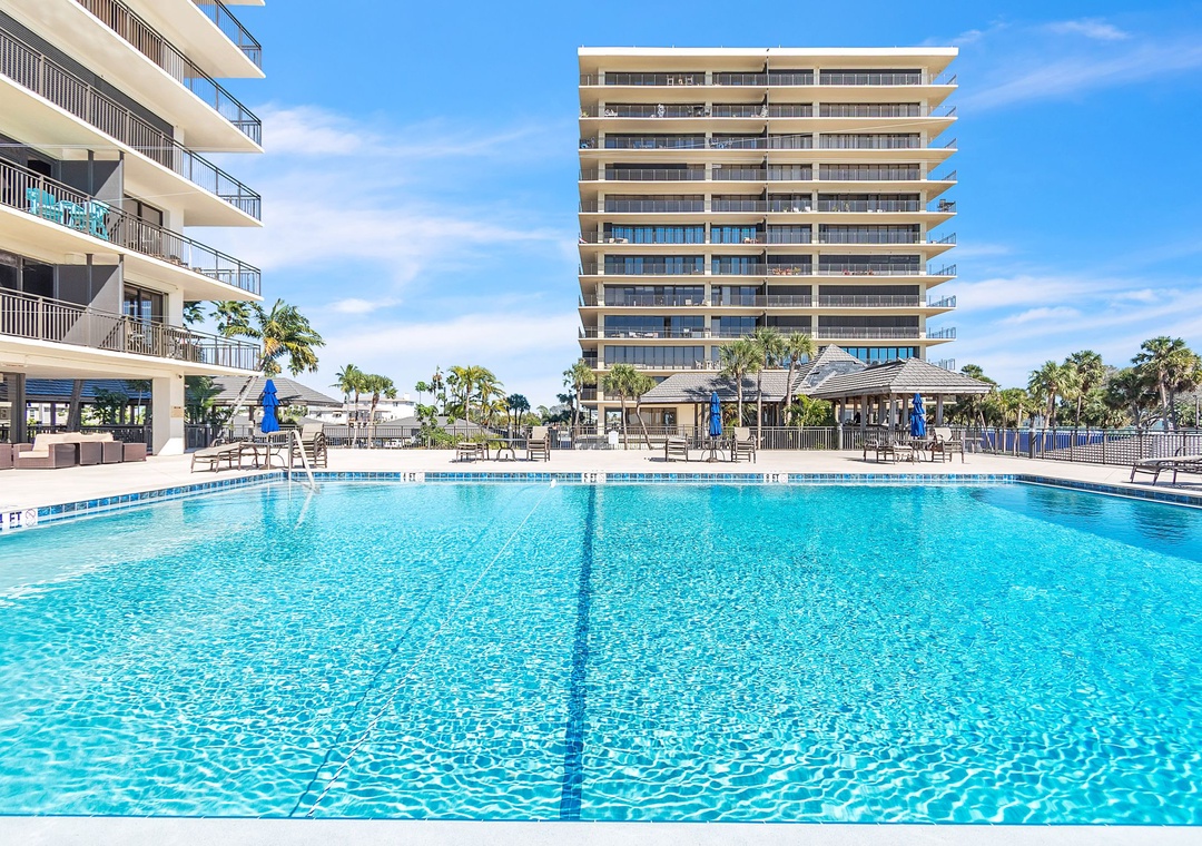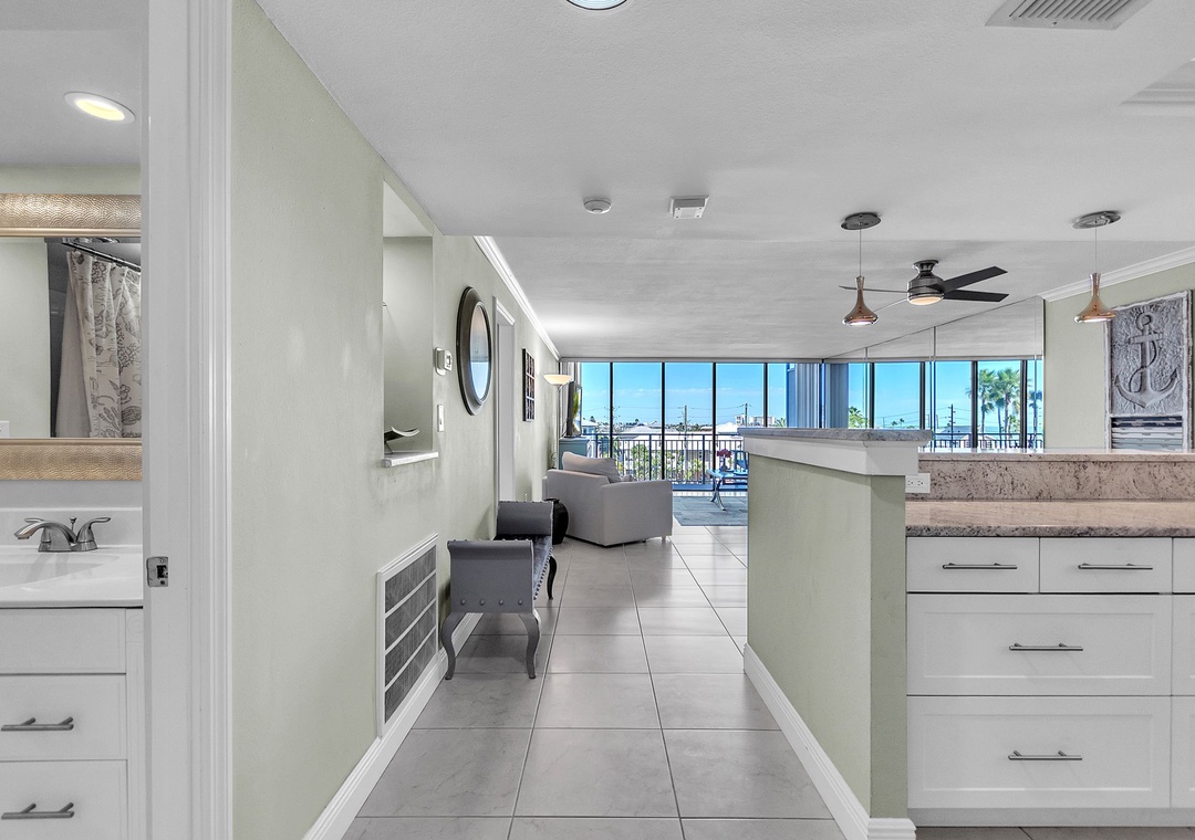 Mansions By The Sea in Treasure Island is a beautifully landscaped waterfront community made up of two buildings, uniquely situated with the Gulf of Mexico on one side and the Intracoastal Waterway on the other—truly surrounded by water and tropical scenery. Onsite amenities include a heated beachside pool with a spacious pool deck and lounge chairs, a community room, workout room, library, and tennis/pickleball courts (with the tennis court located just across the street). Beach access is conveniently located onsite, directly off the pool deck. With stunning shared common areas and a peaceful setting, this condo is perfect for extended stays.