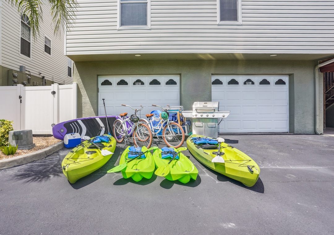 • Unit includes a two-car tandem garage loaded with a propane grill, kayaks, a Paddleboard, bicycles, beach chairs and plenty of beach gear!