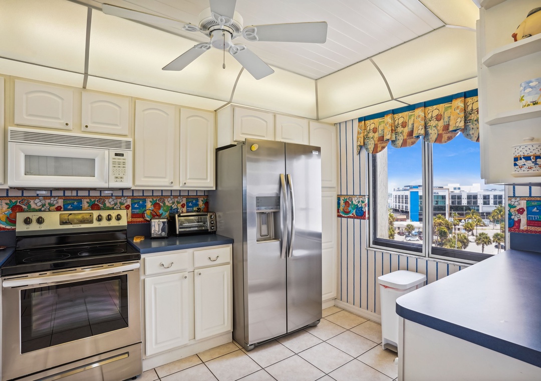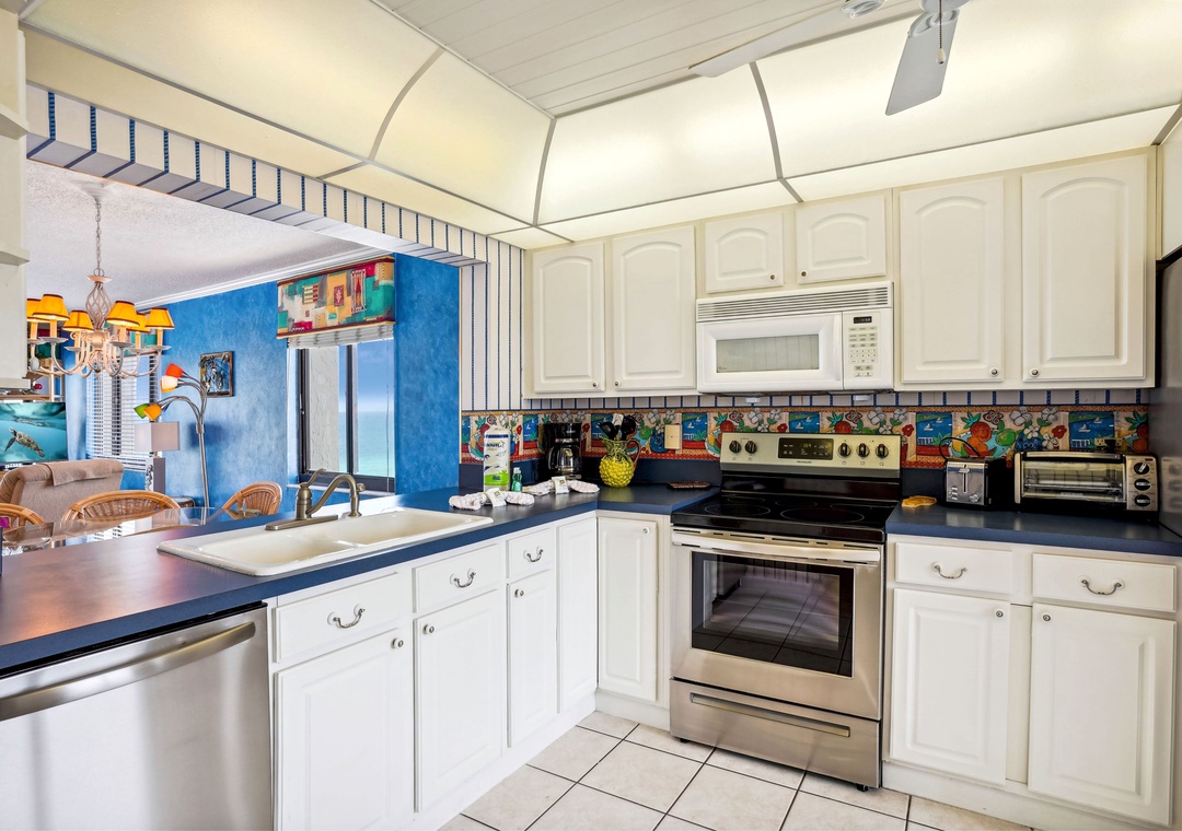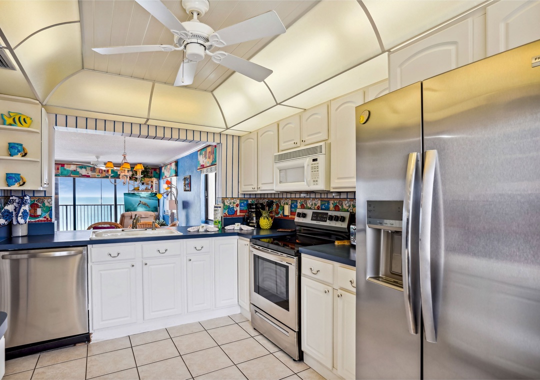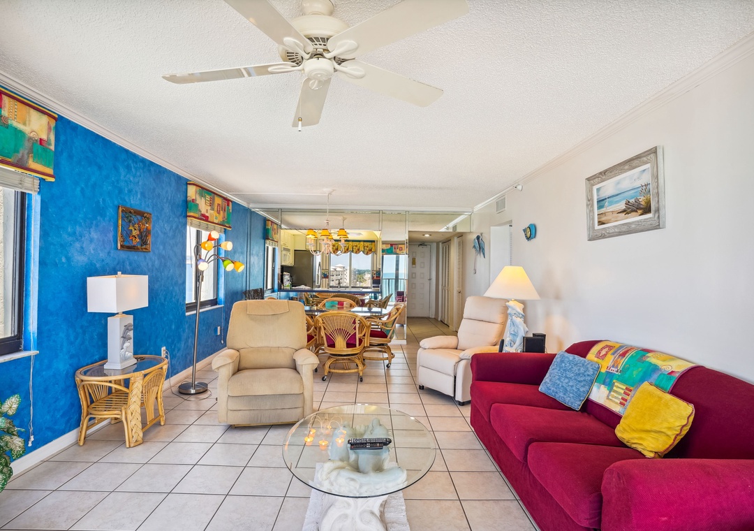 As you step into Ocean Sands 708, you'll be greeted by a beautifully decorated interior that exudes comfort and style. The private balcony, accessible from both the living area and main bedroom, offers breathtaking views of our pristine sugar sand beach and the renowned sunsets that grace our coastline. Indulge your culinary desires in the full-size, fully-equipped kitchen, complete with all the essentials for a delightful dining experience in the comfort of your own vacation home. Stay connected with complimentary wireless internet access, and unwind with your favorite shows on the flat panel TVs located in the living room and both bedrooms. Retreat to the main bedroom, adorned with a luxurious king-size bed, ensuring a restful night's sleep. The second bedroom features a queen-size bed and a murphy bed, perfect for additional guests or family members. For added convenience, the living room also includes a sleeper sofa.