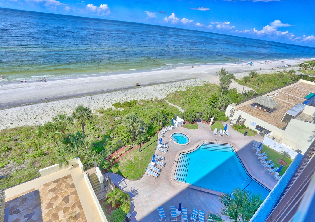 Onsite amenities include a heated pool and hot tub, a spacious pool deck with lounge chairs, shuffleboard and a tiki area with a grill. With direct beach access, you can easily enjoy the soft white sands of Madeira Beach all day long.