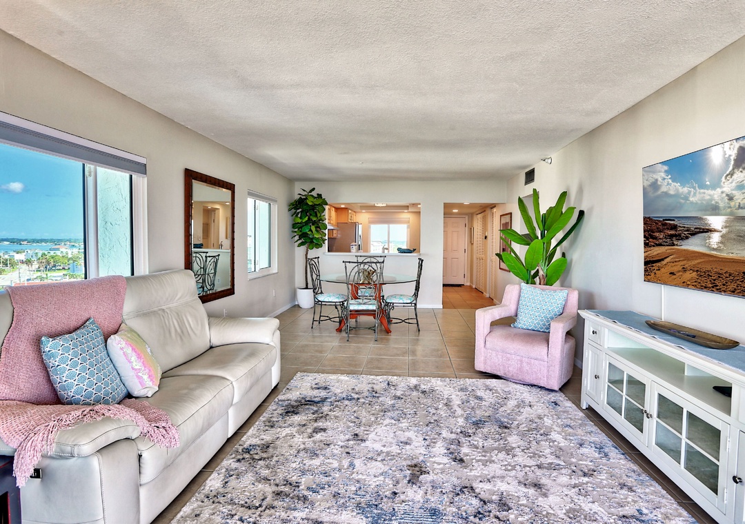 Welcome to Ocean Sands I-808, a stunning 2-bedroom, 2-bathroom condo on the 8th floor with breathtaking views of the Gulf of Mexico and beautiful sands of Madeira Beach. Relax on the private balcony, where you can soak in breathtaking sunsets and enjoy comfortable seating. The bright living room has easy access to the balcony, and the open kitchen features modern stainless-steel appliances, making meal prep a pleasure with everything you need right at your fingertips. Start your day with coffee and breakfast on the balcony as the beach comes to life.