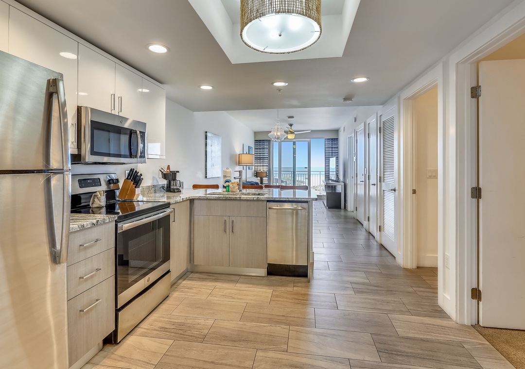 We are so glad you enjoyed this new, beachfront building!! Thank you for staying with us and we hope to have you back for future visits!Resort Rentals staff