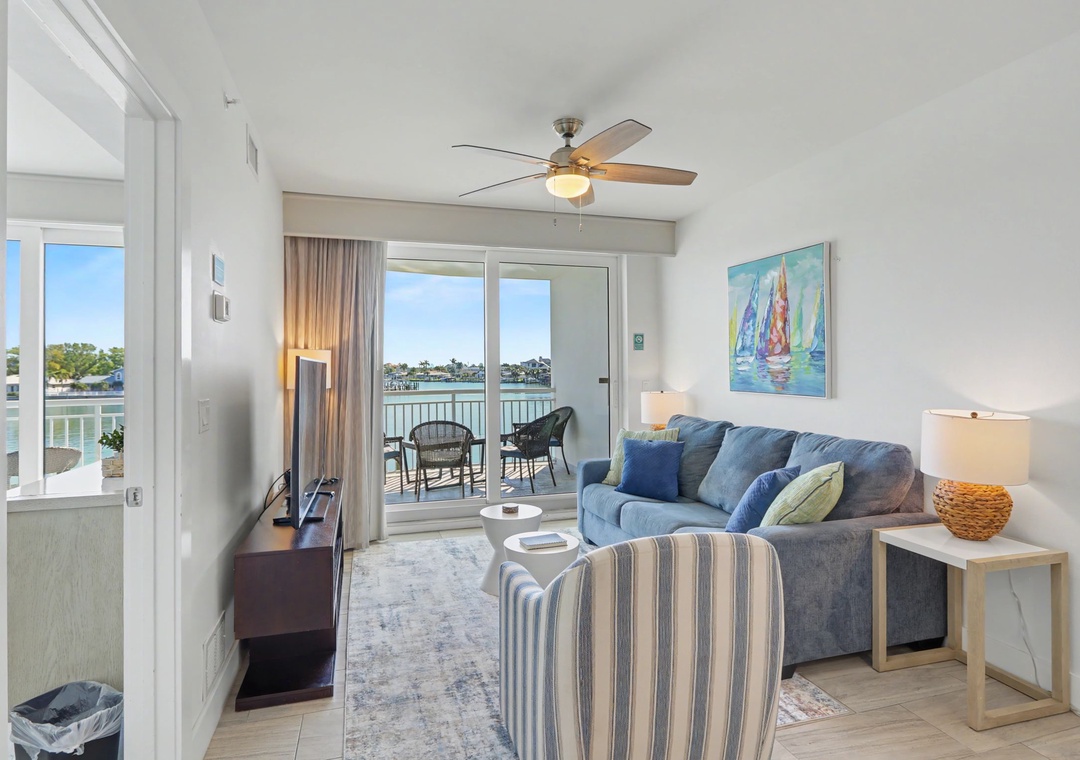 Experience relaxation on your beach vacation. Your whole family, fur-baby, too will feel right at home in this spacious 2 bedroom | 2 bath bayfront condo, Oceana 204. This beautiful condo is the home away from home you have been dreaming of. Join us for your well-deserved vacation and relax with gorgeous views from the 2nd floor balcony overlooking the peaceful, pristine bay and private marina.