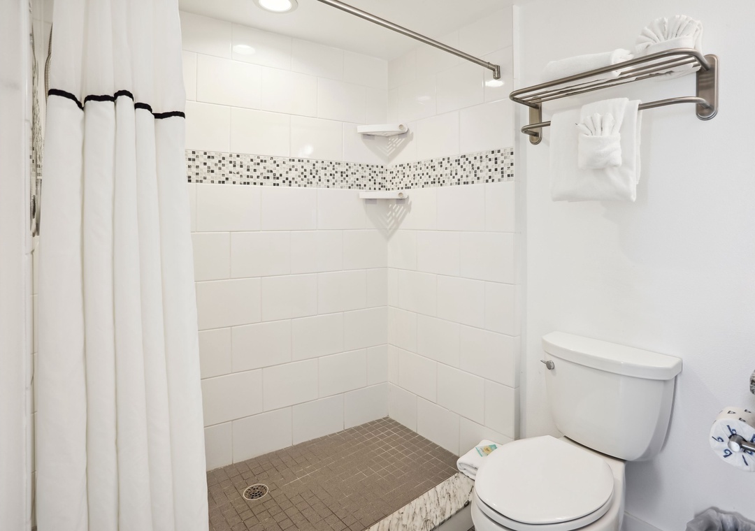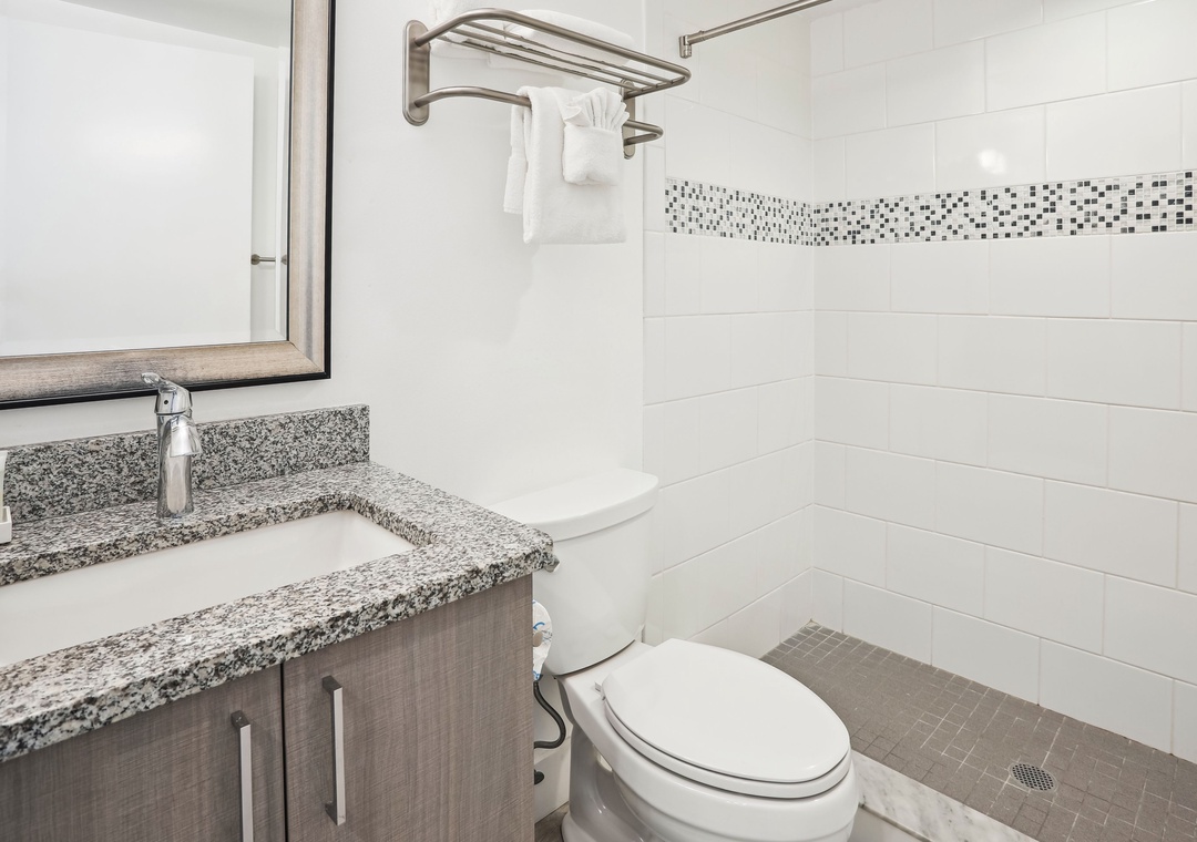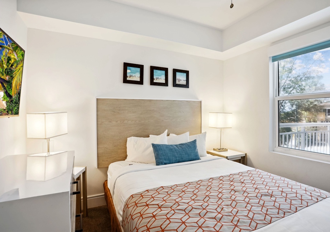 The main bedroom features a king bed and a private bathroom, which has a walk-in shower. The second bedroom has a queen bed and direct access to another full bathroom. Treat yourself on your next vacation by staying at this charming 2-bedroom, 2-bathroom vacation rental!
