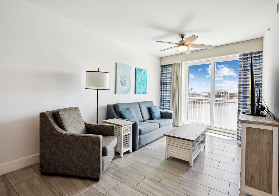 We loved our stay! The balcony was a beautiful location for having coffee, eating lunch, and just sitting at the table and enjoying the view! Always action, whether the birds or porpoises or various boats going by. And always beautiful, whether early in the morning or with midday sun or some clouds in the sky! We had gorgeous sunrises to wake up to! And when it was a bit windy or chilly we could enjoy the view from the sofa through the big sliding door! It was an easy walk to groceries, as well as restaurants and shops. We also loved walking to Sunset Beach and Caddy's was a favorite for the atmosphere as well as sunsets to die for!- Reviewed On: 12/9/2023