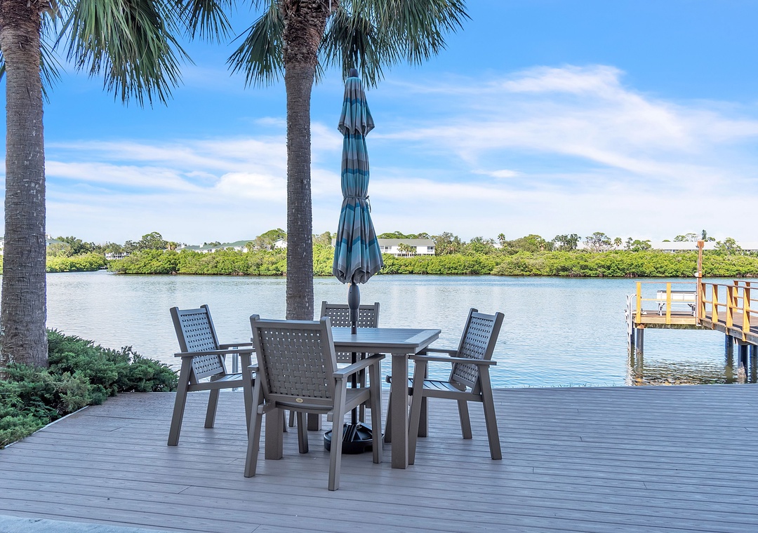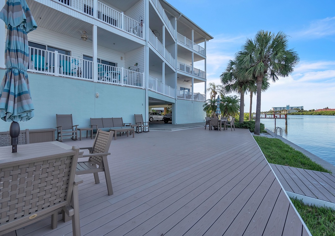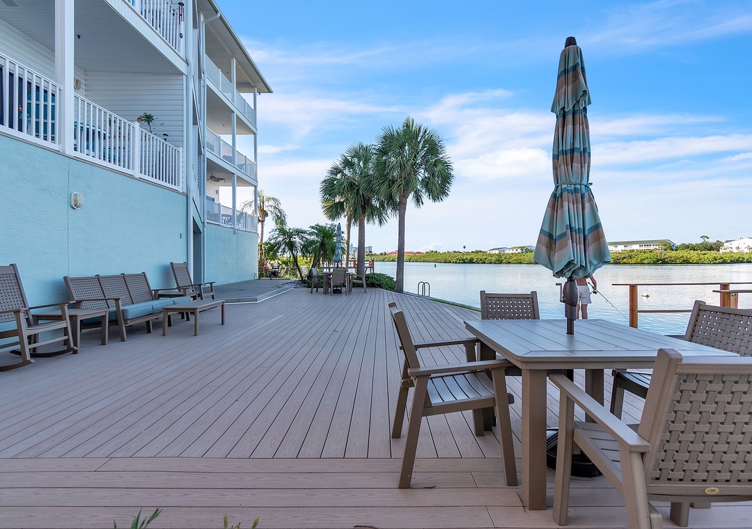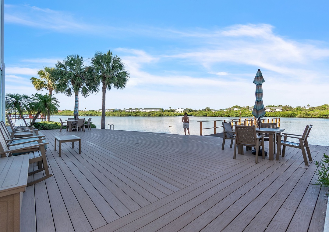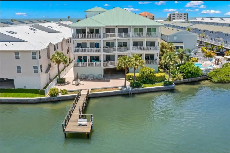 Palm Beach Condominiums is a charming, small complex nestled along the Intracoastal Waterway in Indian Shores, FL. Just a short 3–5 minute walk (about 0.3 miles) to the soft sands of the Gulf beach, it offers the perfect blend of waterway tranquility and beachside fun. Guests enjoy a shared heated pool with a sunny pool deck, comfortable lounge chairs, and a peaceful fishing dock. A shared deck area with tables and chairs provides a relaxing spot to take in the beautiful Intracoastal views and watch the boats and dolphins go by—ideal for morning coffee or evening relaxation.