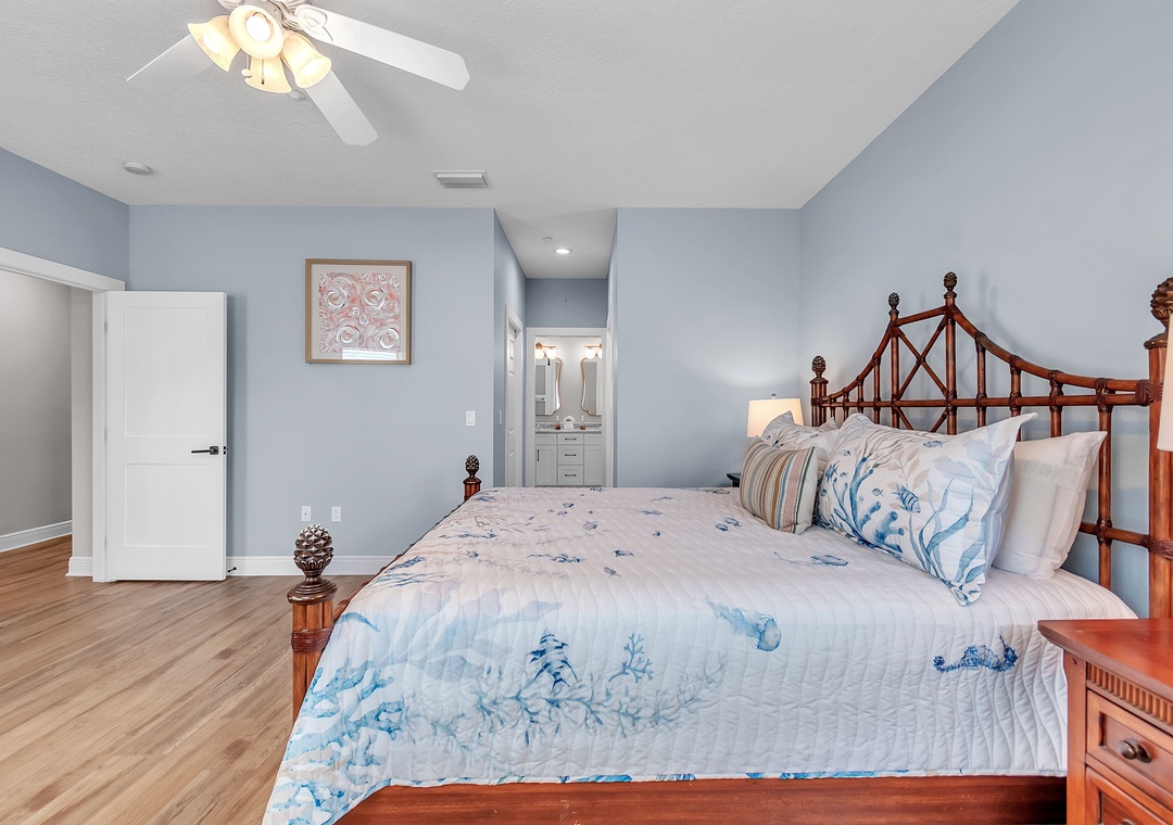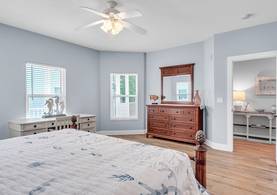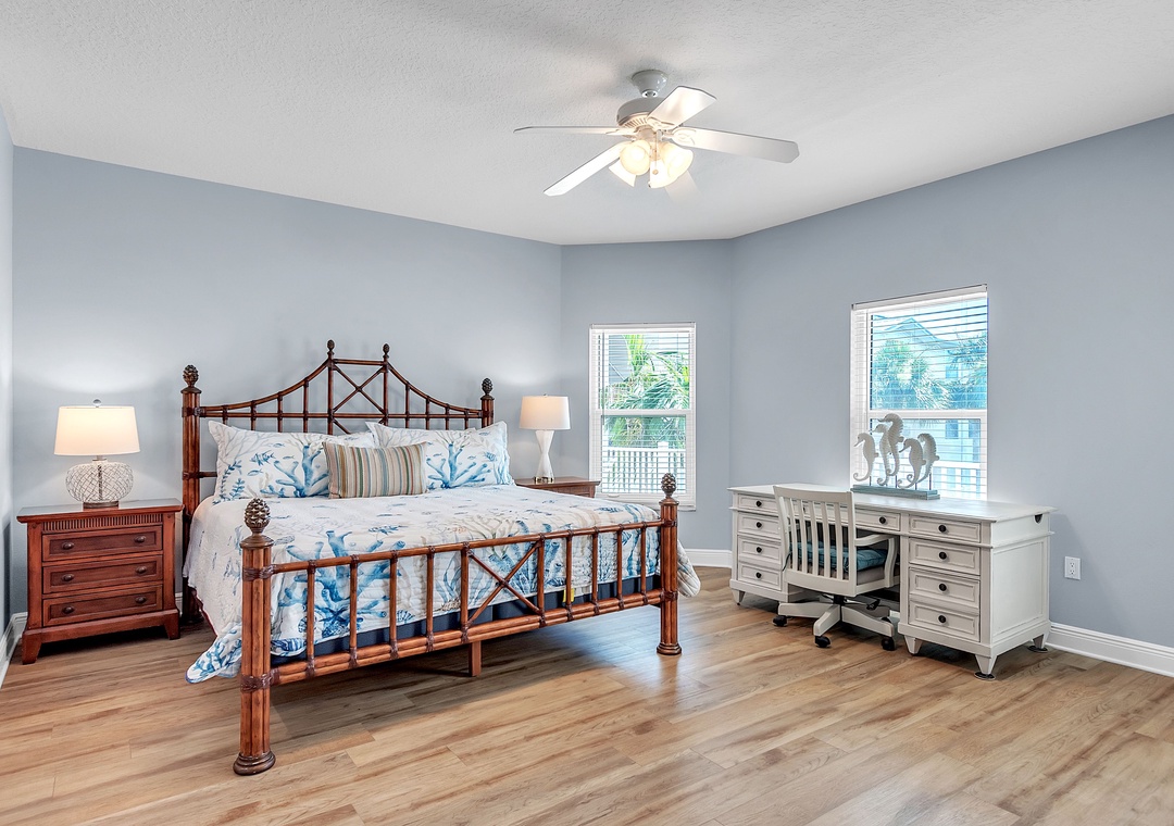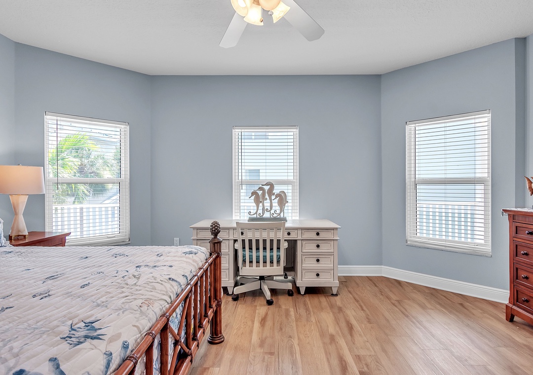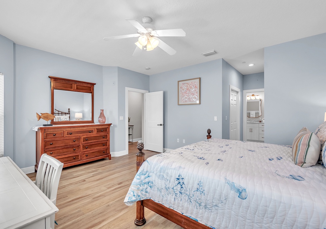 Master Bedroom - King Bed. Attached Bathroom. Desk Space