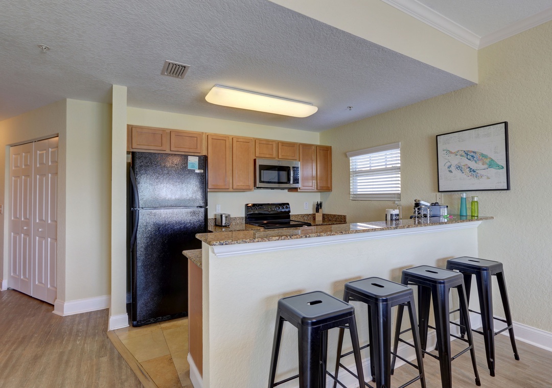* Fully Equipped Kitchen with Granite Counter Tops