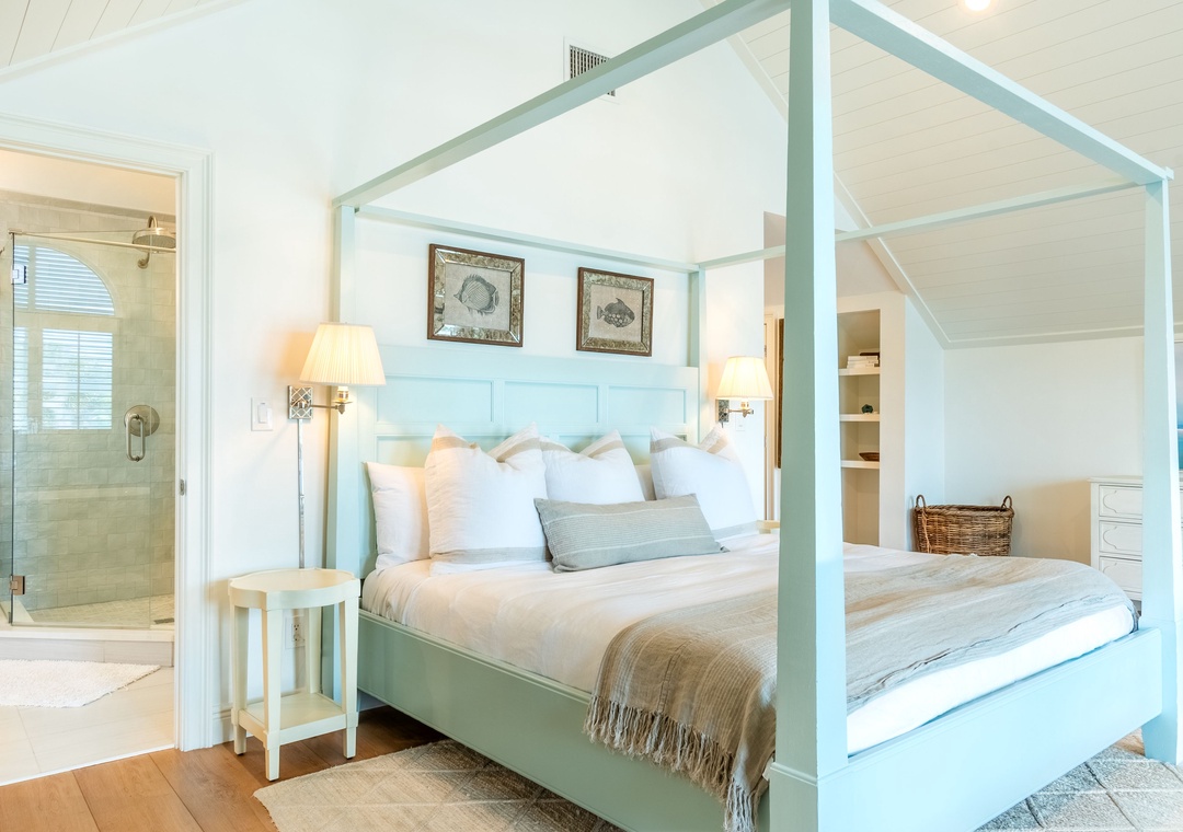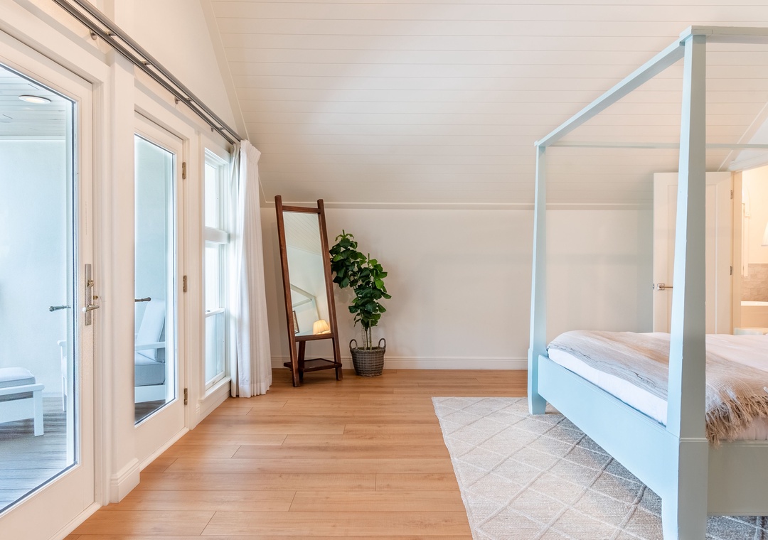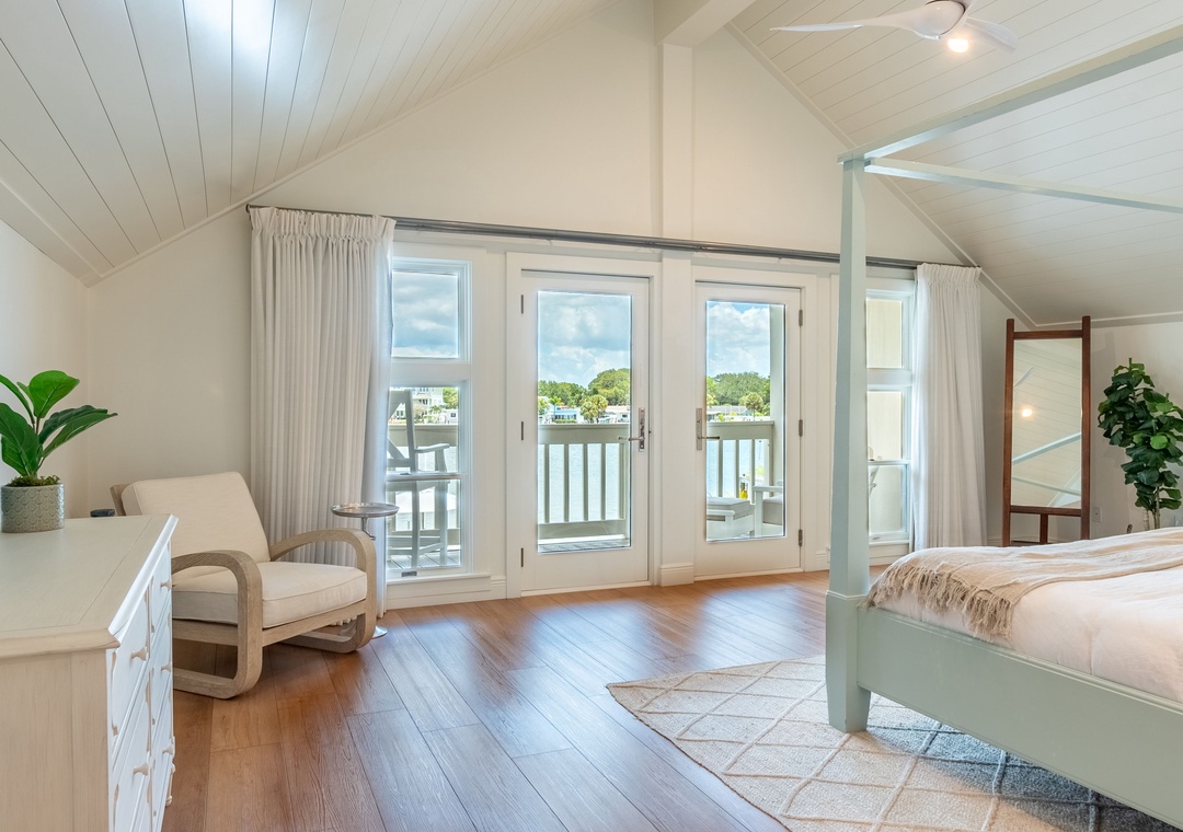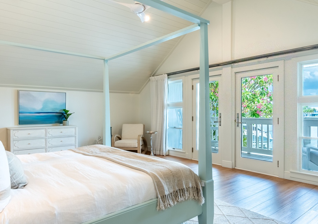 Master Bedroom: Upper Level – King Bed with Private Balcony – Attached Bathroom