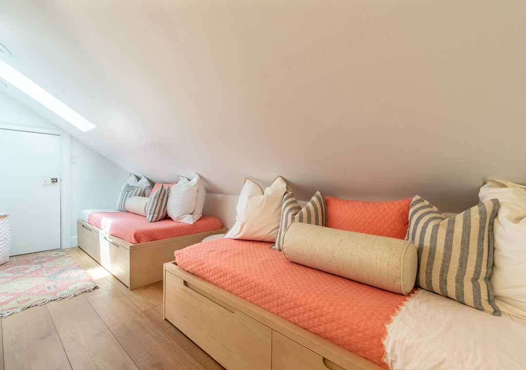 Bonus Space: Upper Level – Great Kids Area! 2 Twin Storage Beds.