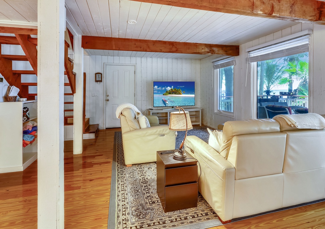 This house was super cute, older in style but the decor was more modern. We had 6 adults (25 years+) and my 1 year old son staying here; when I booked the house it was advertised as “family friendly” which turned out to be untrue. There were overloaded surge protectors just hanging out and random wires/cords to things zip tied together on the living room rug that my son could’ve easily hurt himself on. There was barely enough silverware to last the 6 adults one meal at the house, we ended up having to buy plastic silverware and plates to use for meals apart from our first day at the house. The deck area was spacious enough but was so dirty that our entire party agreed it probably had never been cleaned. There was an outdoor shower, which is super convenient, except for the fact that it’s right next to a giant overgrown cactus that hangs into the shower area, so of course my very curious 1 year old wanted to play with it! The walkway to the beach was full of sharp rocks, decent sized twigs and pine cones and debris from the bushes on either side, definitely needed to be cleaned up a little in our opinion. The only upsides to this house were the area it’s in and the beach- there are so many bars or restaurants that can be walked or driven a short distance to, and the beach at the property was nice. All in all, the house gets 3 stars, we were just underwhelmed.- Reviewed On: 5/6/2024