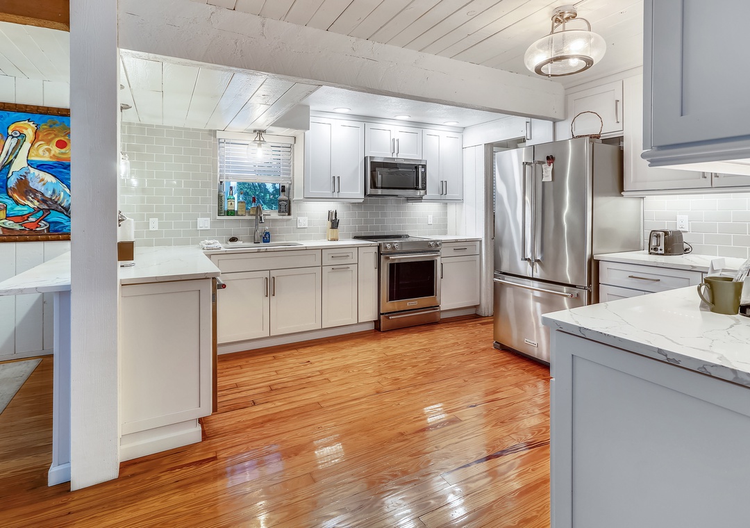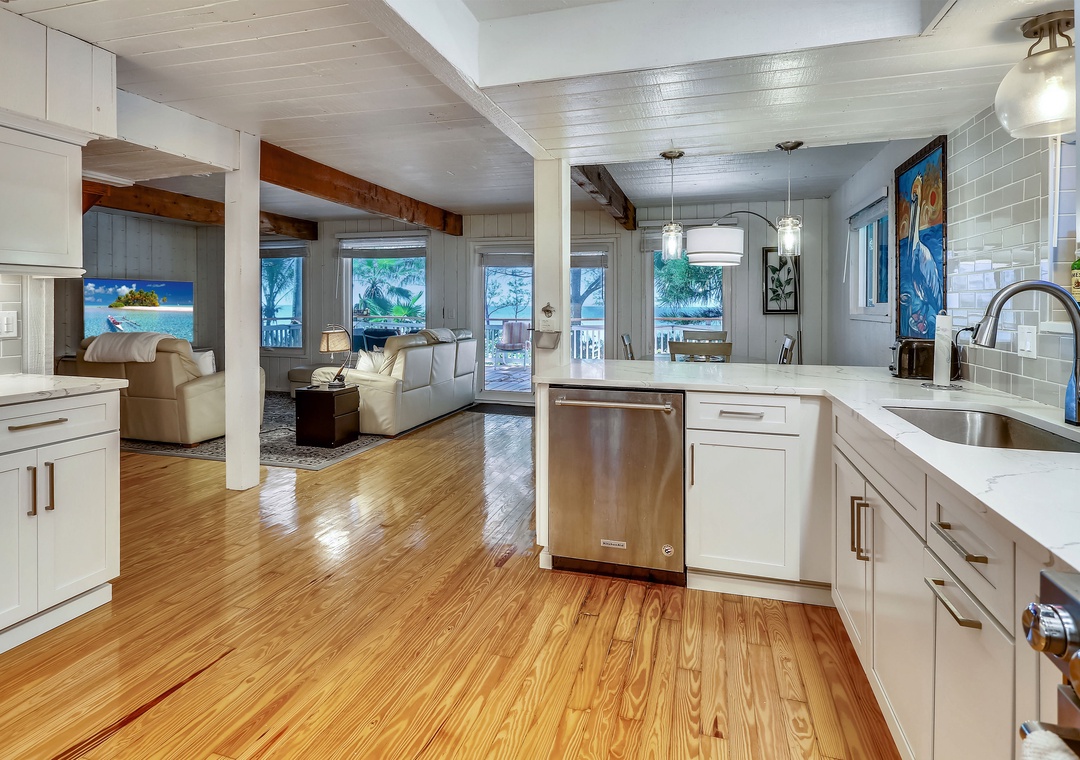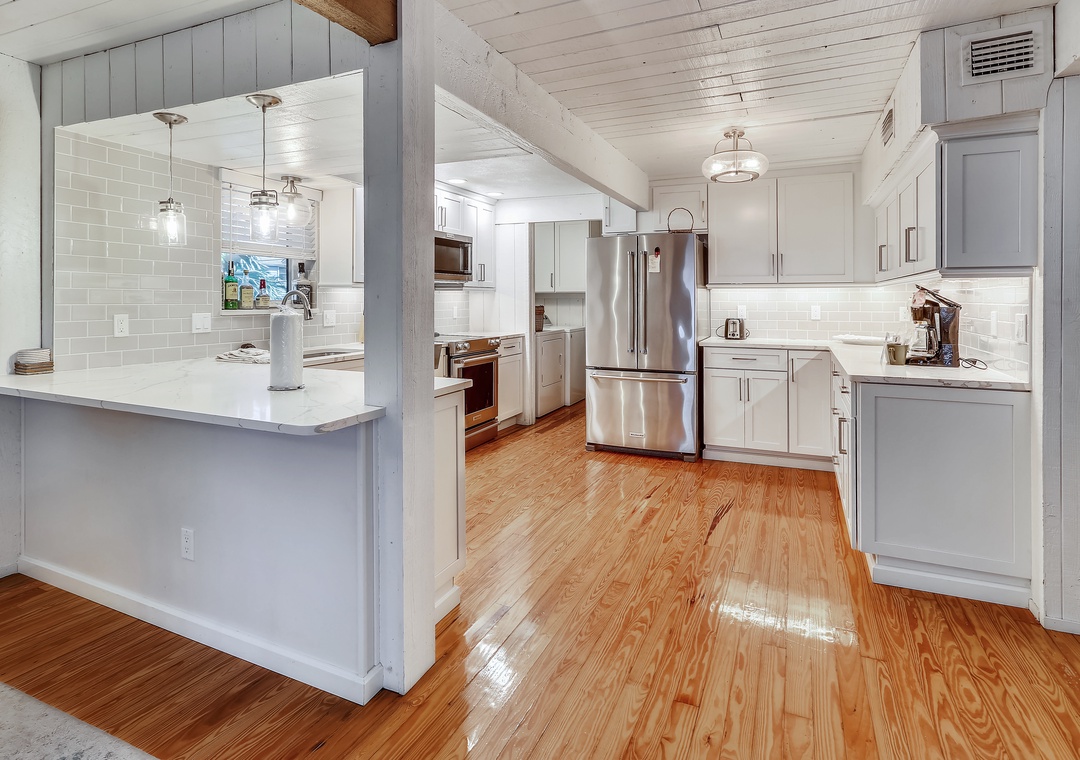 The home has recently been renovated and features beautiful wood floors throughout. The large open kitchen is fully equipped with everything you need to prepare a delicious meal with state-of-the-art stainless-steel appliances and granite counter tops. The comfortable bright living room features a Smart TV and opens up to a large outdoor deck with comfy furniture and breathtaking views of the Gulf of Mexico and the beach. The large deck is great to gather with your family and friends, to hang out with a good book, sunbathe or watch the breathtaking Gulf Coast sunsets while sipping on a fancy cocktail!