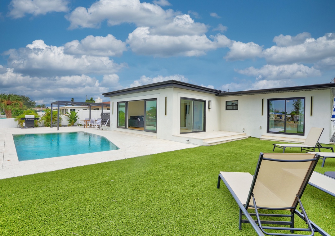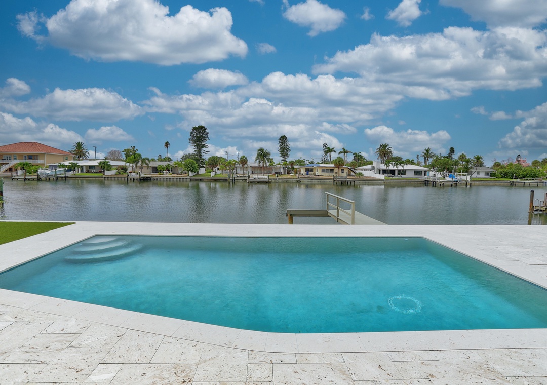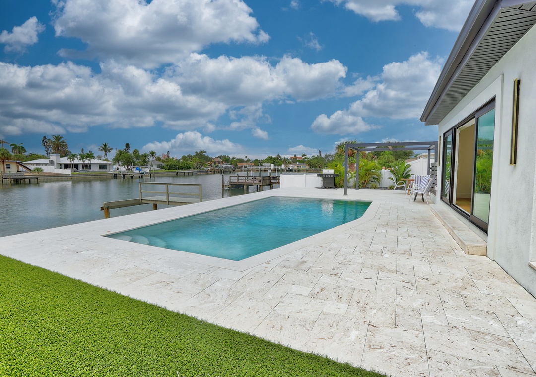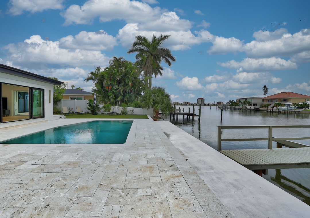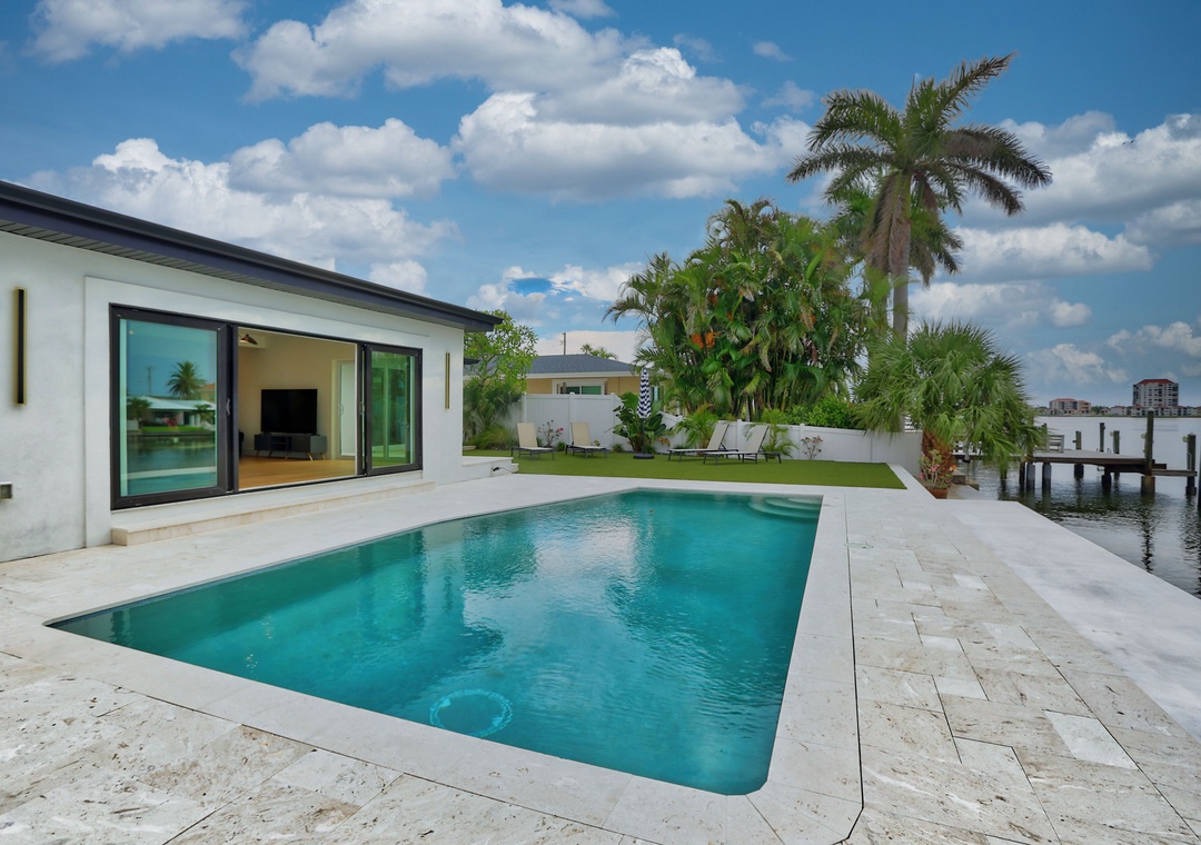 Step outside to enjoy the best of waterfront living—relax on the expansive back deck with table seating, lounge chairs, and views of the Intracoastal. Cool off in the saltwater pool, cast a line from the private fishing dock, or simply take in the coastal breeze in the private backyard. The garage fits one car, with extra parking available in the driveway.