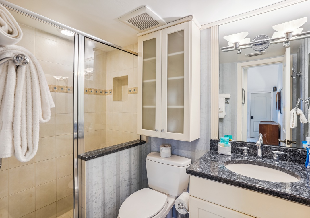 Upstairs, the master bedroom features a queen-sized bed from which the gorgeous gulf views can be enjoyed. The main bedroom also features an en-suite bathroom which includes a walk-in shower. Down the hall, the guest bedroom features two twin sized beds and an attached full bathroom with an all tile, tub/shower combo. Downstairs is an additional half bathroom for your convenience.