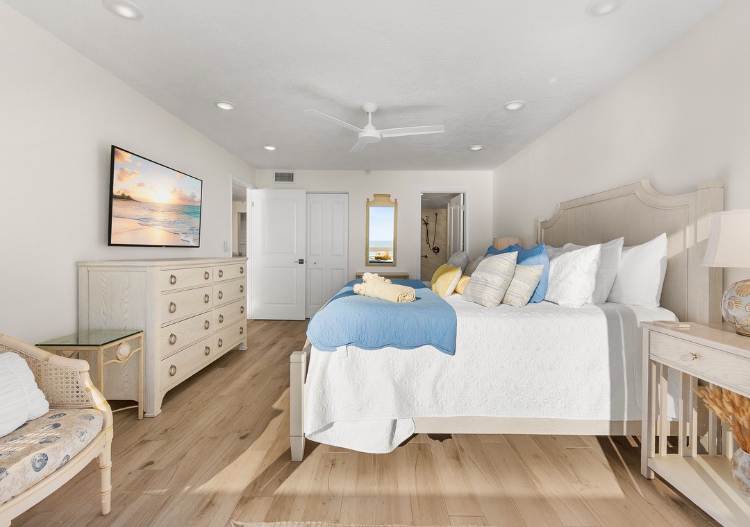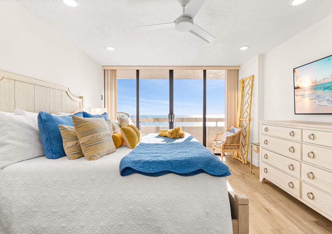 Master Bedroom - King Bed. Attached Bathroom. Balcony Access.
