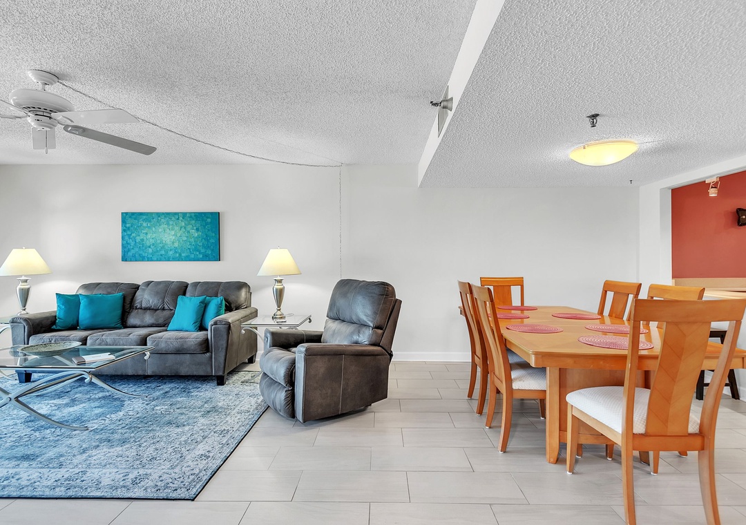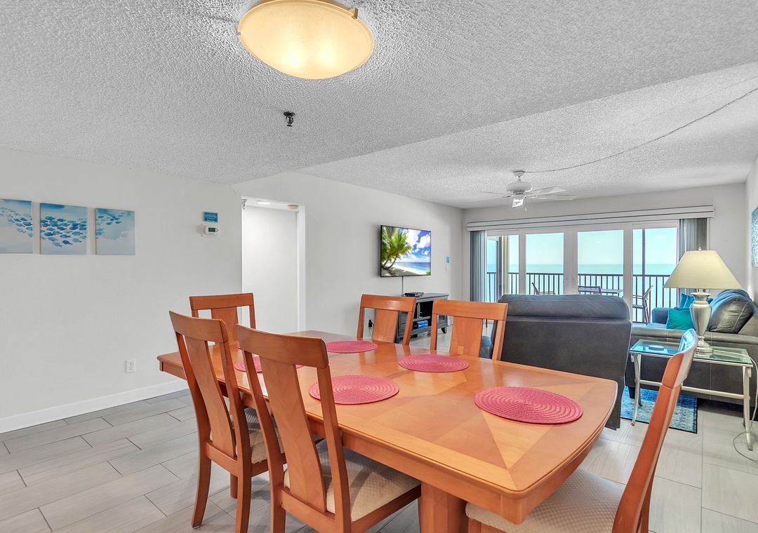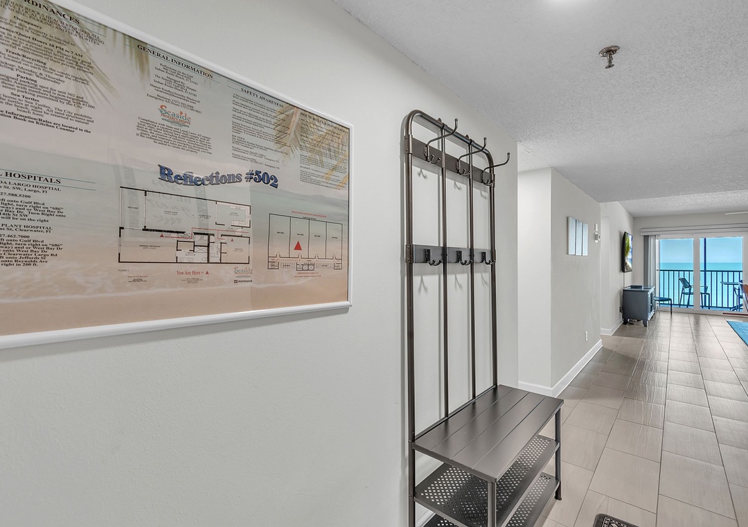 Welcome to Reflections On The Gulf #502 - Paradise on the Gulf! A beautiful beachfront condo in the heart of Indian Rocks Beach, FL, where awesome views and laid-back coastal comfort come together. This spacious and bright 2-bedroom, 2-bath condo offers stunning direct Gulf and beach views from both the living room and the master bedroom, with balcony access from each. The open living area features a comfy couch, reclining chair, and large, new Smart TV, flowing seamlessly into the dining area and open kitchen—perfect for relaxing, entertaining, or enjoying game night around the large dining table. The well-equipped kitchen offers major appliances, generous counter and cupboard space, extra counter seating, and is fully stocked with dishes, utensils, cookware, and both drip and pod coffee makers, so you can truly make yourself at home.