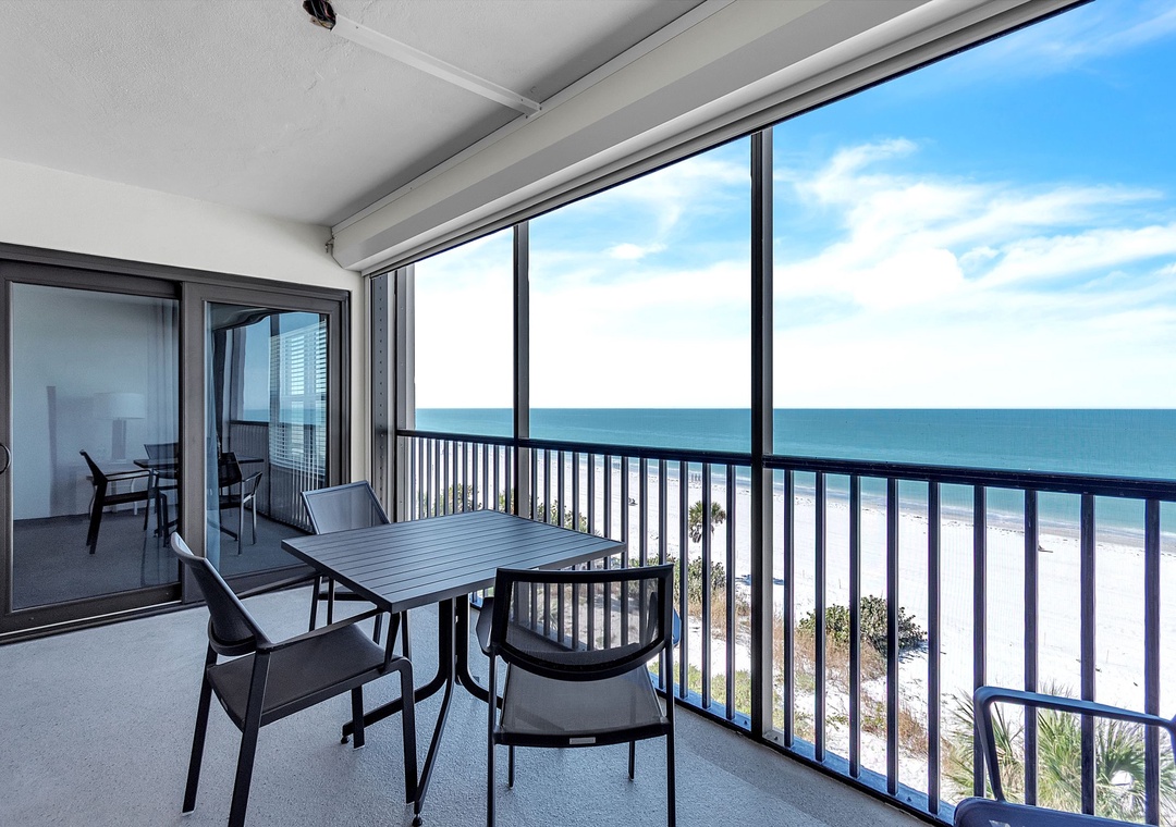 * Spacious Screened-In Balcony with Seating - Relax and Enjoy Sunsets, Boats, and Beach Activity