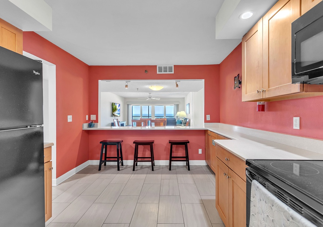 Step out onto the screened-in balcony with table and chairs to watch beachgoers, boats, and unforgettable Gulf sunsets. You will truly enjoy your time on the balcony!