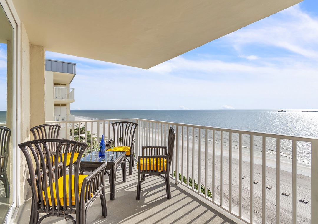 30’ balcony with enough patio chairs for the whole family to enjoy together
