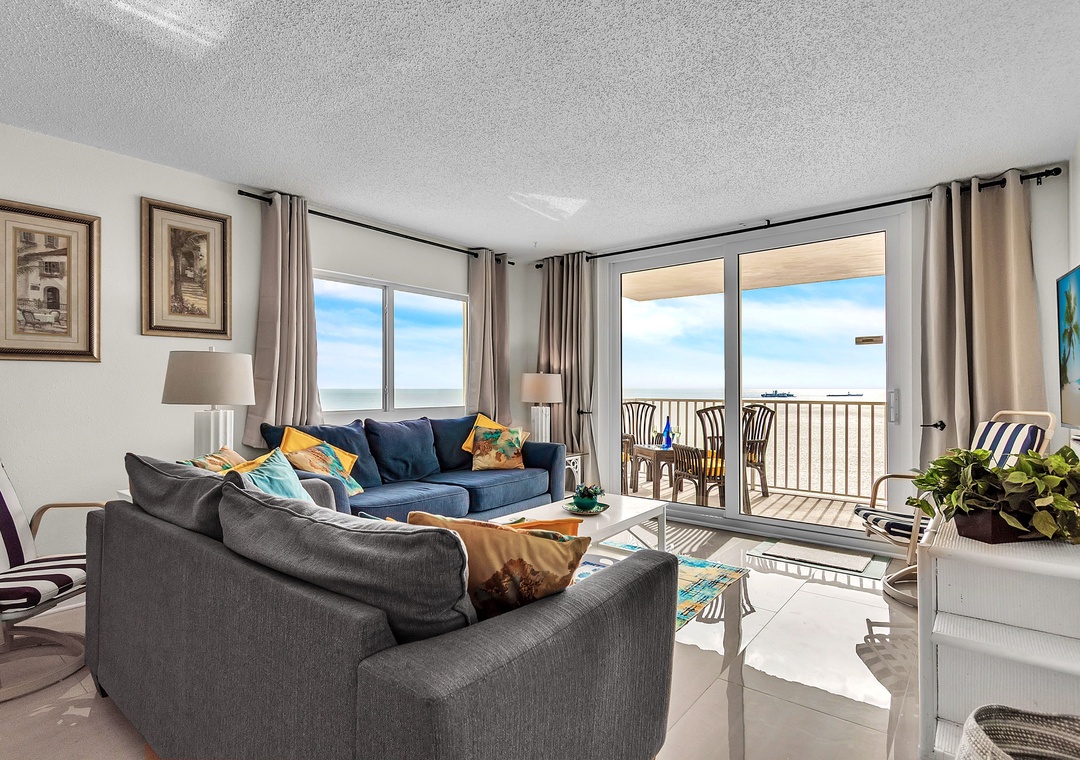 Live on the water's edge in this stunning, newly modernized 3-bedroom, 2-bathroom corner suite. Located in Sand Castle II, one of Indian Shores' most popular beachfront buildings, this condo is your front-row seat to spectacular views.