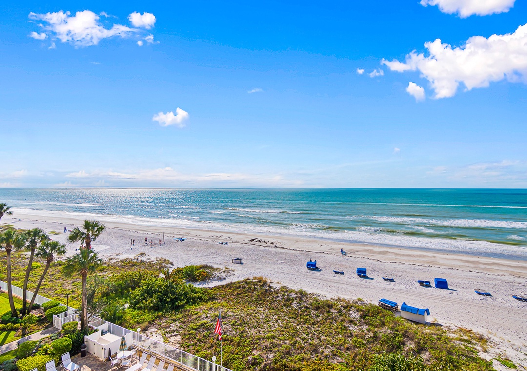 This remodeled, bright and spacious 3 bedroom beach front corner condo is located at Sandcastle II, one of the three most popular beach front vacation buildings in Indian Shores. The amenities at this well maintained property are endless! The community features a beautiful large pool deck with loungers, direct waterfront heated pool and a hot tub. A nice BBQ area beach side with two Gas grills and a charcoal grill with tables are available for our tenants’ use. For added convenience, the building has two elevators.